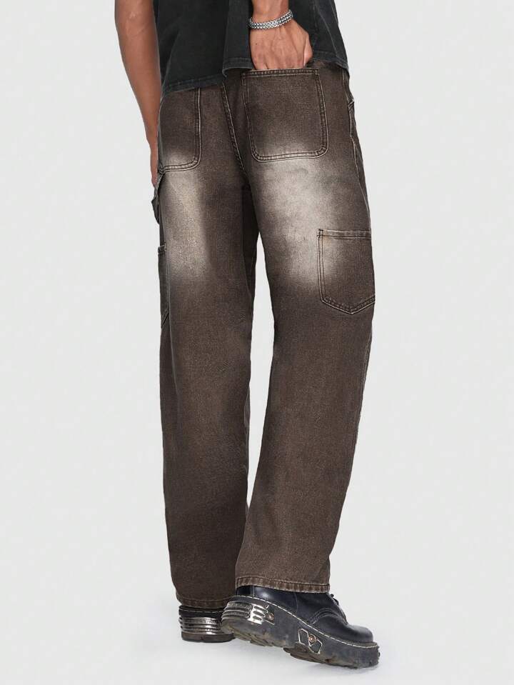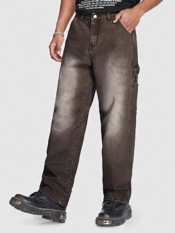 Street Life Hombres Jeans de pierna recta con bolsillo oblicuo