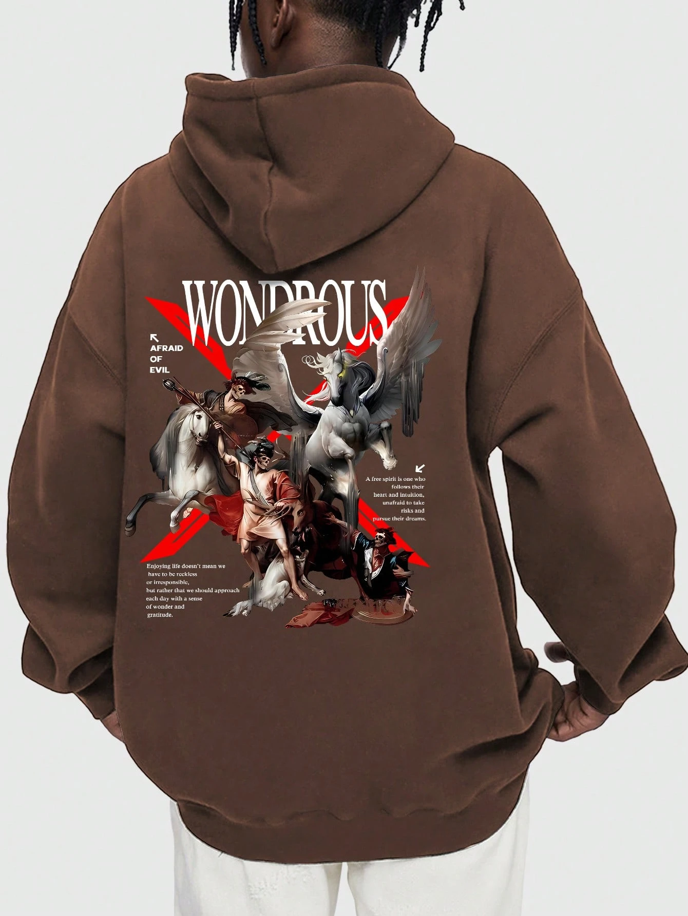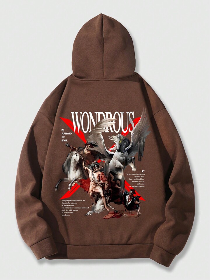 Street Life Hombres Capucha con estampado de slogan y figura con cordón con forro térmico