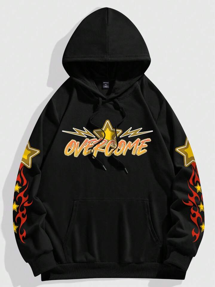 Street Life Hombres Capucha con estampado de slogan con cordón