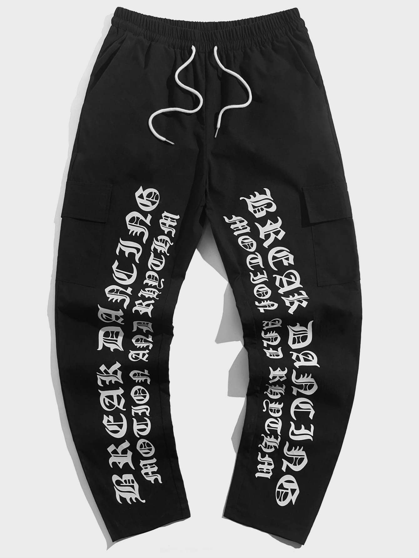 Street Life Hombres Pantalones cargo con estampado de slogan de cintura con cordón