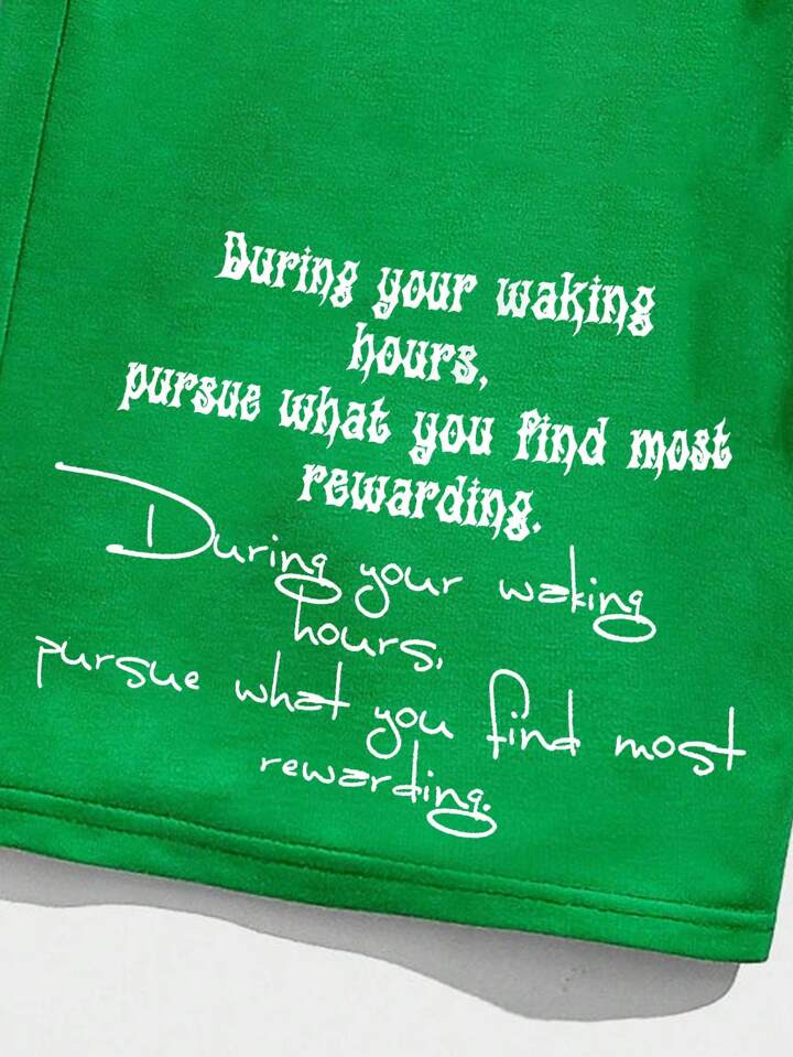 Street Life Hombres Shorts con estampado de slogan de cintura con cordón