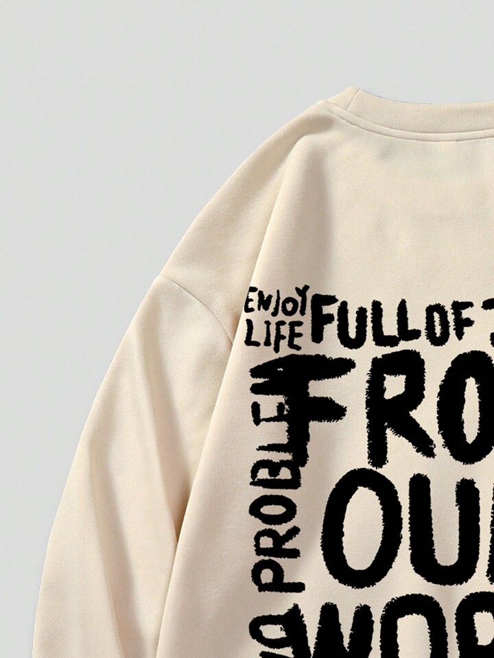 Street Life Hombres Sudadera con estampado de slogan con forro térmico