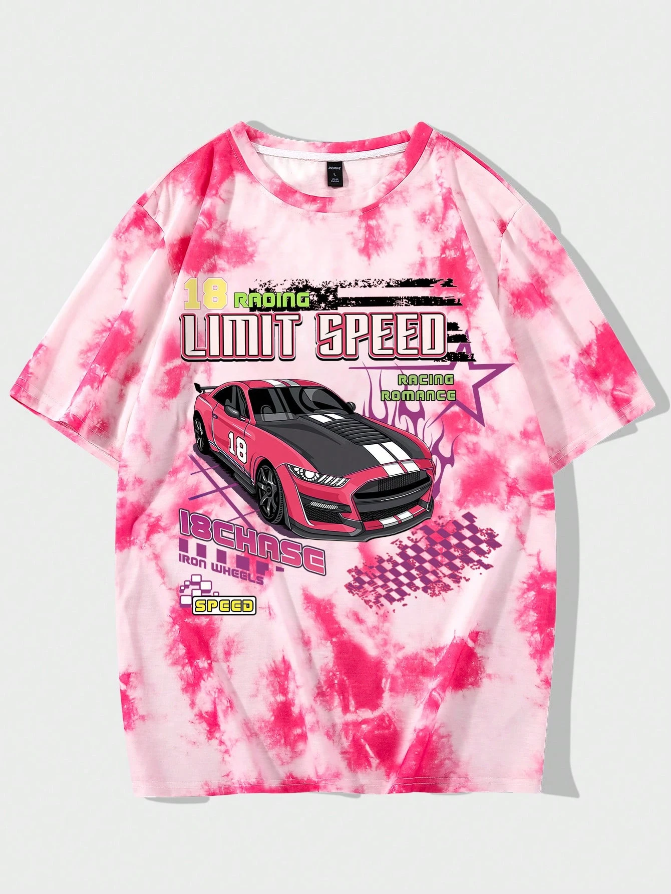 Street Life Hombres Camiseta de tie dye con estampado de coche y letra