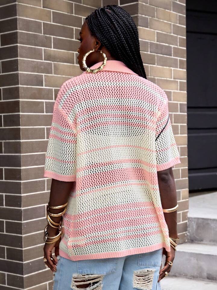 Street Life Camisa de punto holgada de manga corta, top de punto flojo