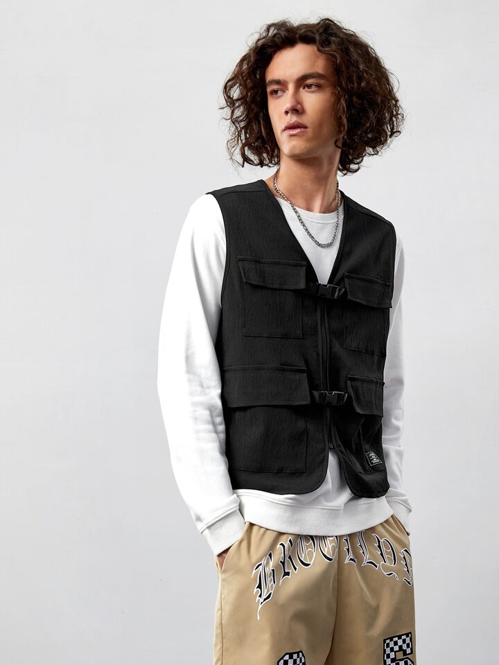 Street Life Hombres 1 Pieza Chaleco De Chaqueta Con Parche De Letra Y Detalles De Bolsillo Con Solapa