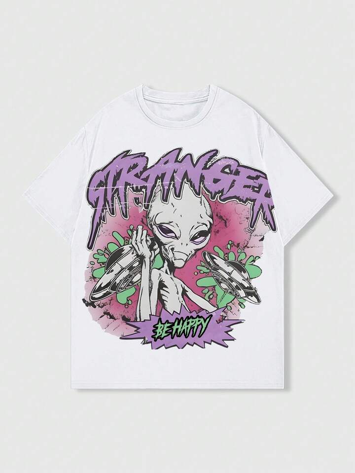 Street Life Camiseta de manga corta con estampado de alien para hombre, adecuada para uso diario en primavera y verano, escuela