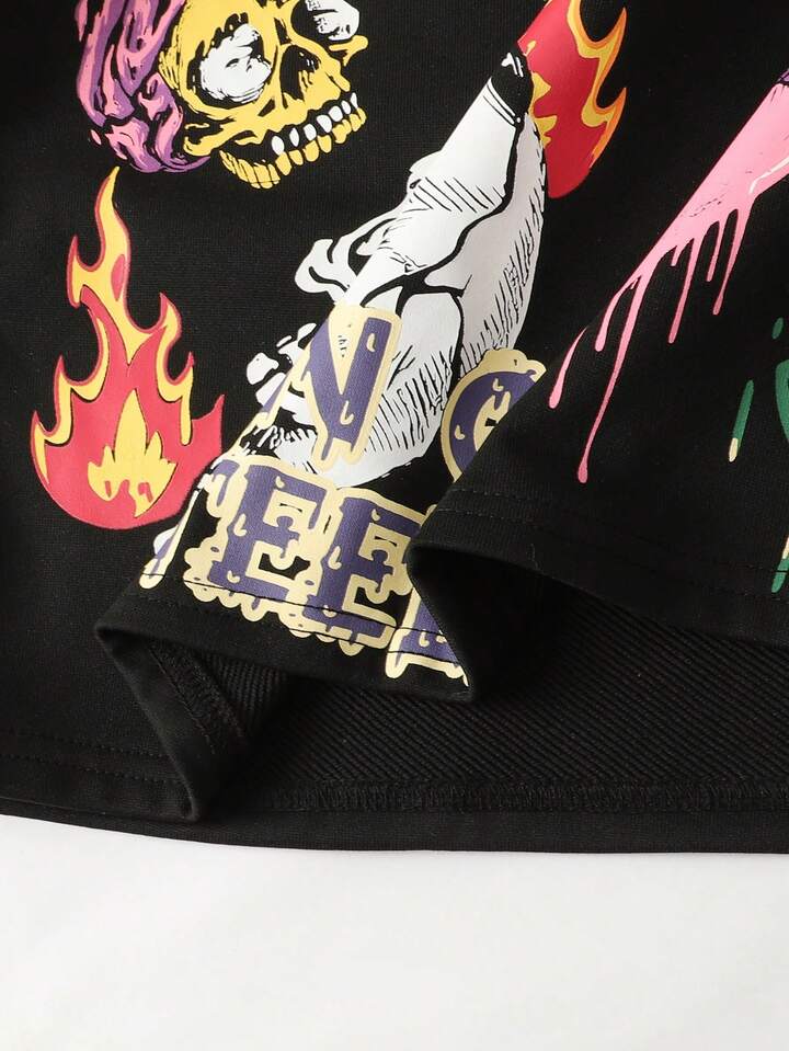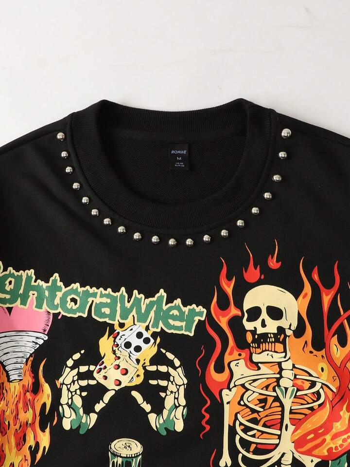 Street Life Sudadera casual de cuello redondo de manga larga con estampado de esqueleto para hombres, otoño