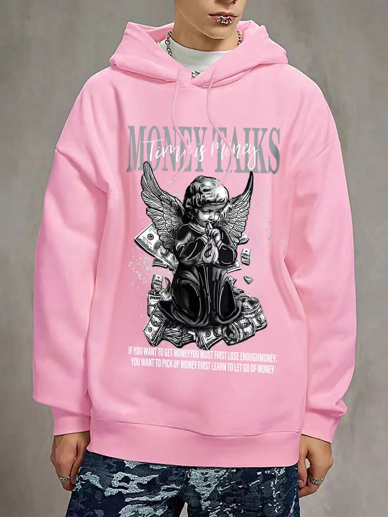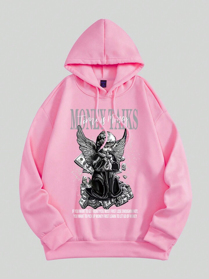Street Life Hombre Carácter Y Letra Impresión Sudadera Con Capucha Y Cordones