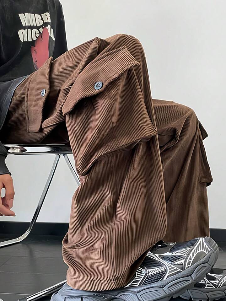 Street Life Pantalones Cargo De Pana De Color Sólido Para Hombre