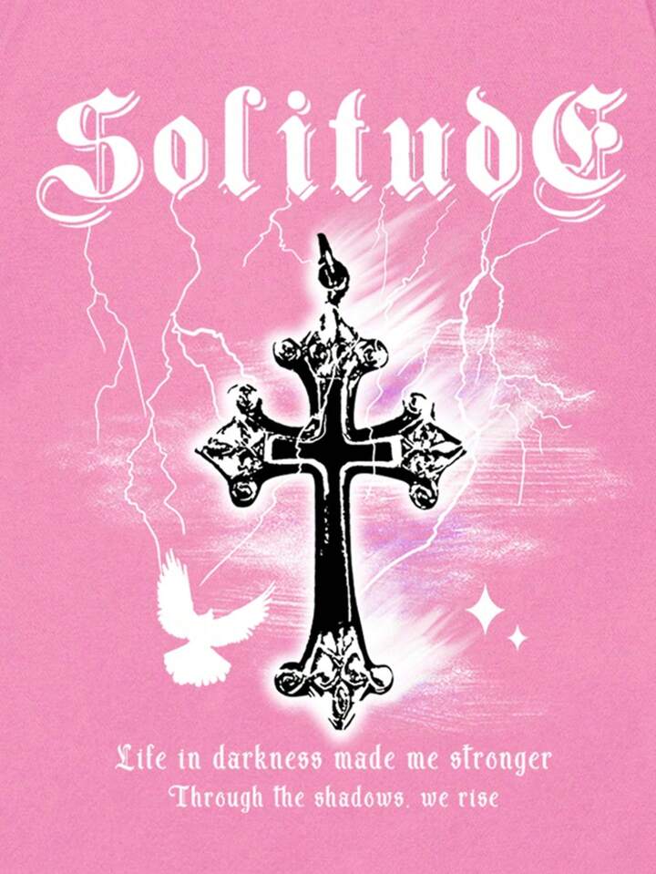 Street Life Camiseta gráfica de letra cruzada Y2K para hombres para Halloween, escuela