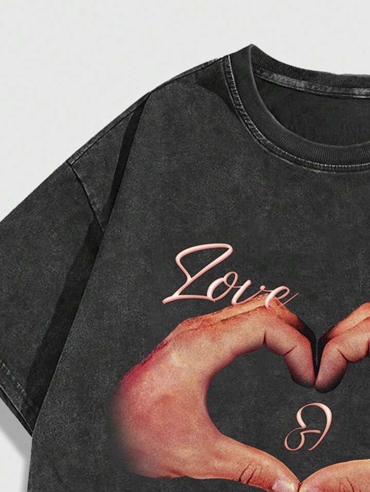 Street Life Camiseta de manga corta impresa con corazones con arroz frito con huevo y tomate para hombre, adecuada para uso diario en primavera y verano