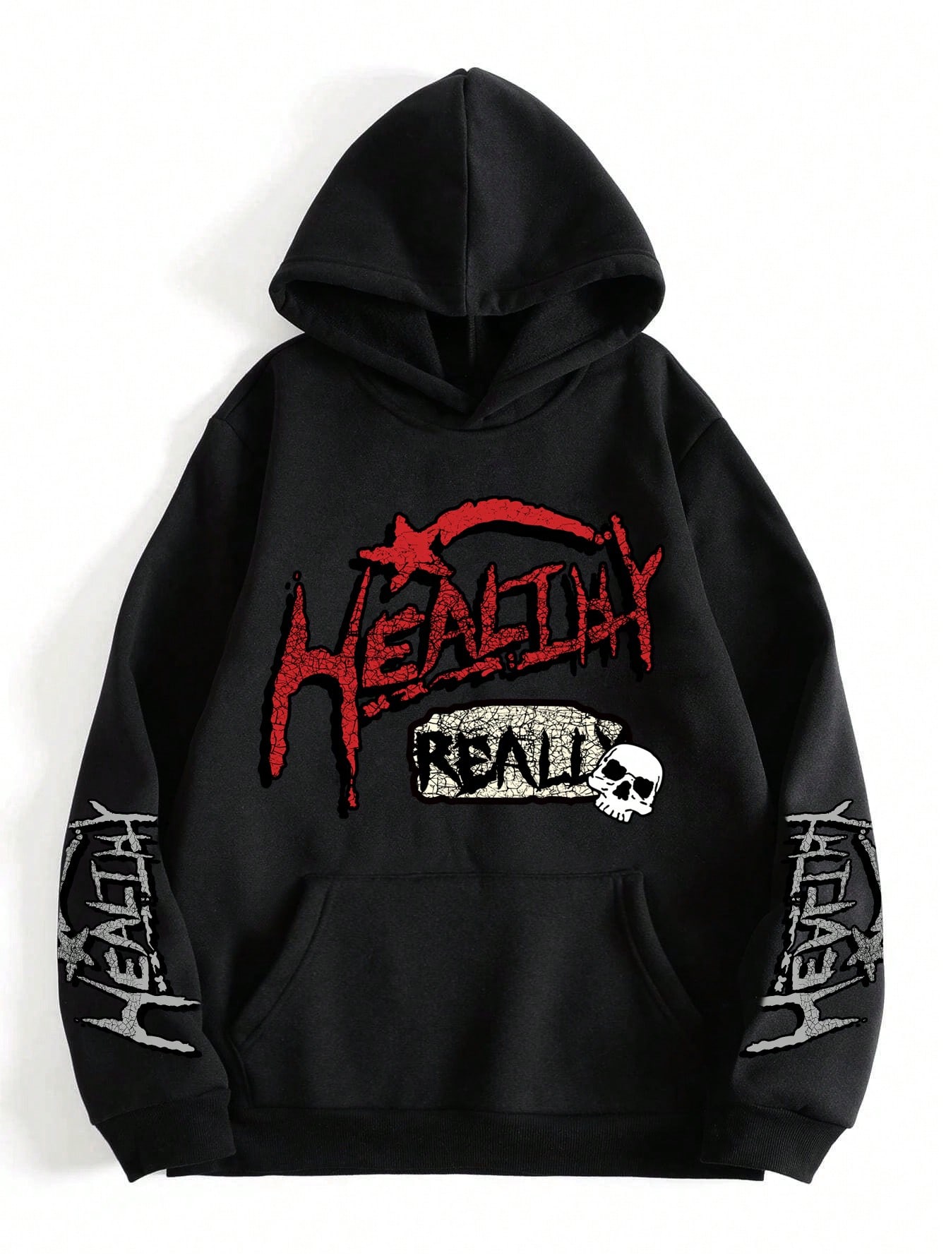 Street Life Sudadera Térmica Con Bolsillo Canguro, Con Gráficos De Letras Para Hombre