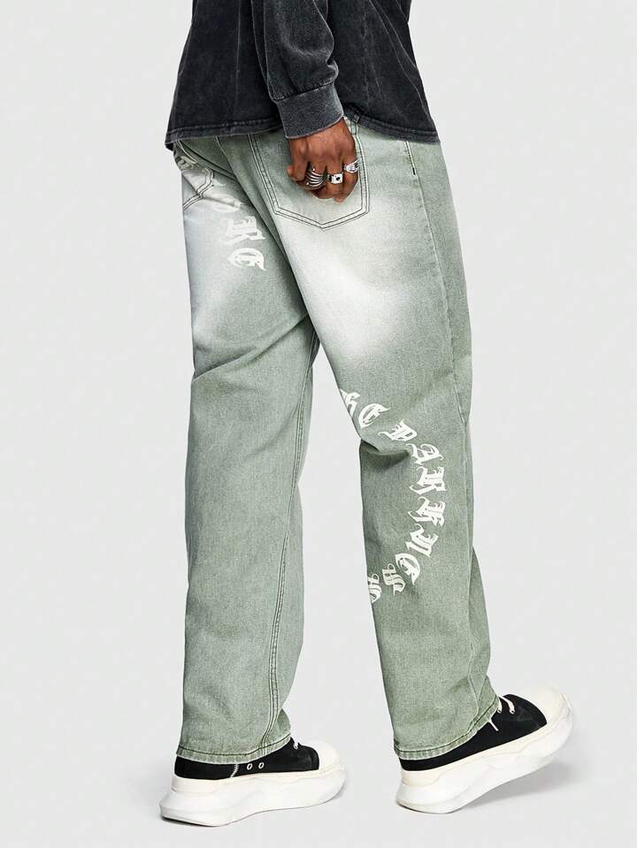 Hombres Vaqueros Rectos Con Estampado De Letra