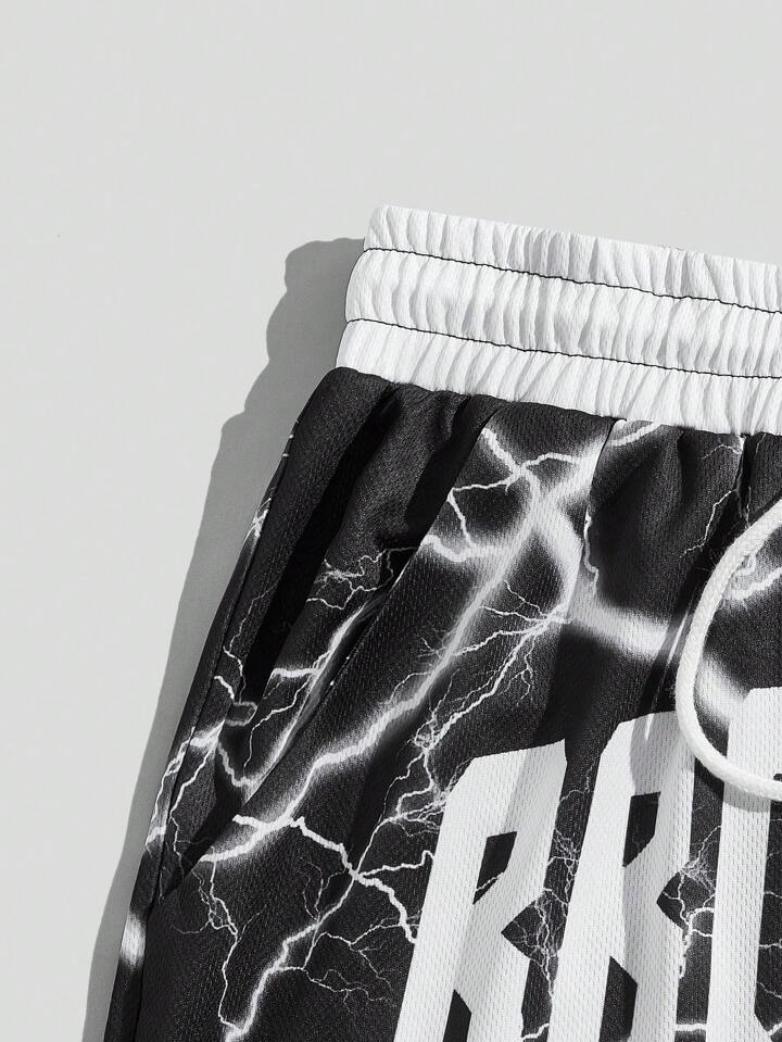 Street Life Shorts de baloncesto para hombres con gráfico de letras y ribete a rayas, para la escuela