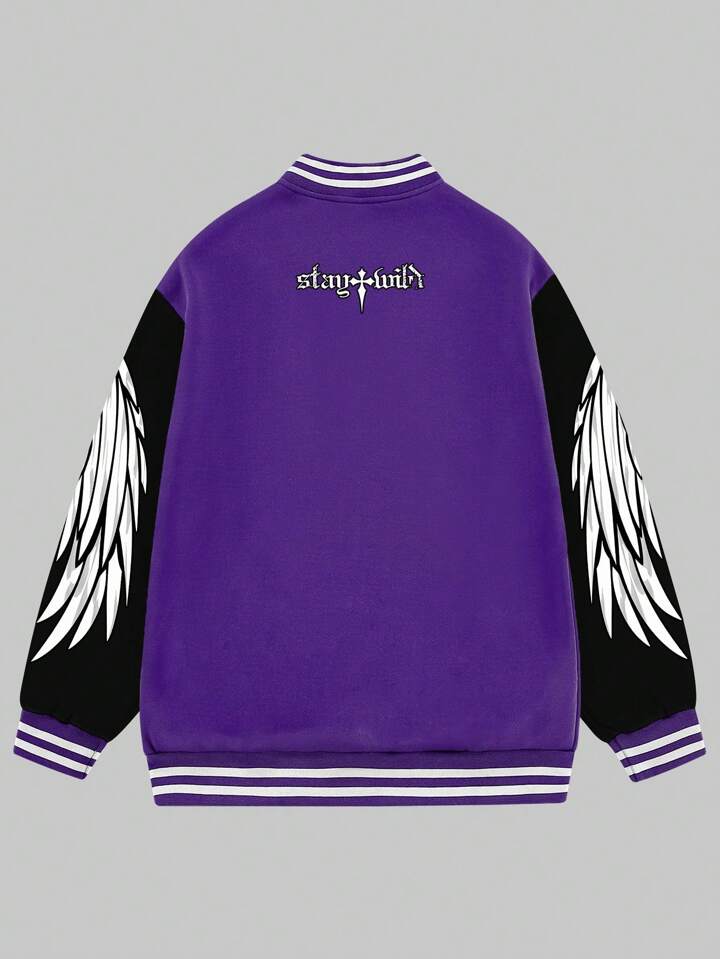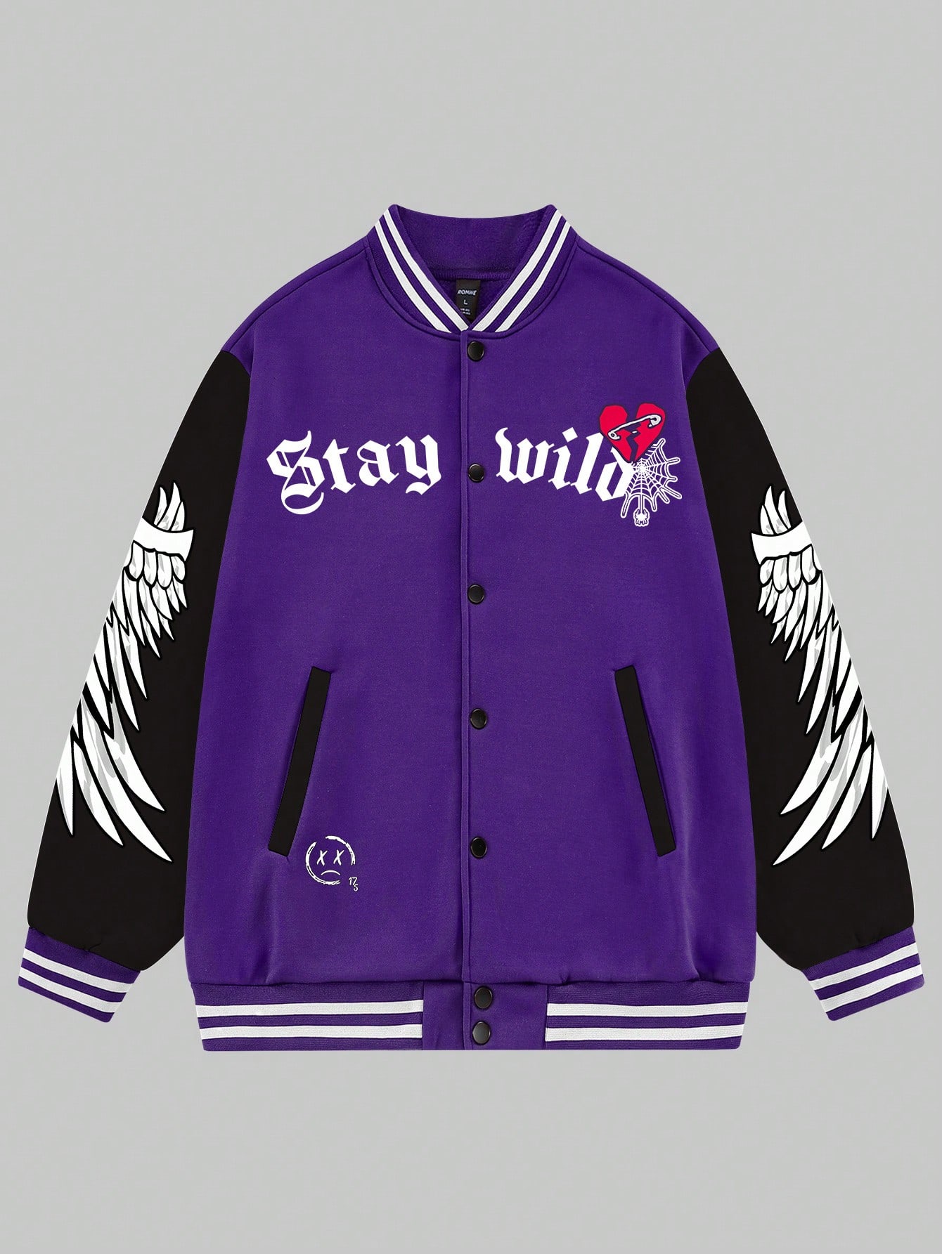 Street Life Chaqueta Universitaria Para Hombres Con Gráfico De Letras Y Detalles De Rayas