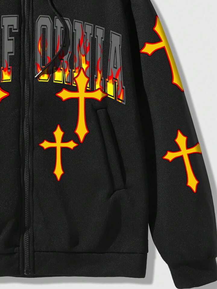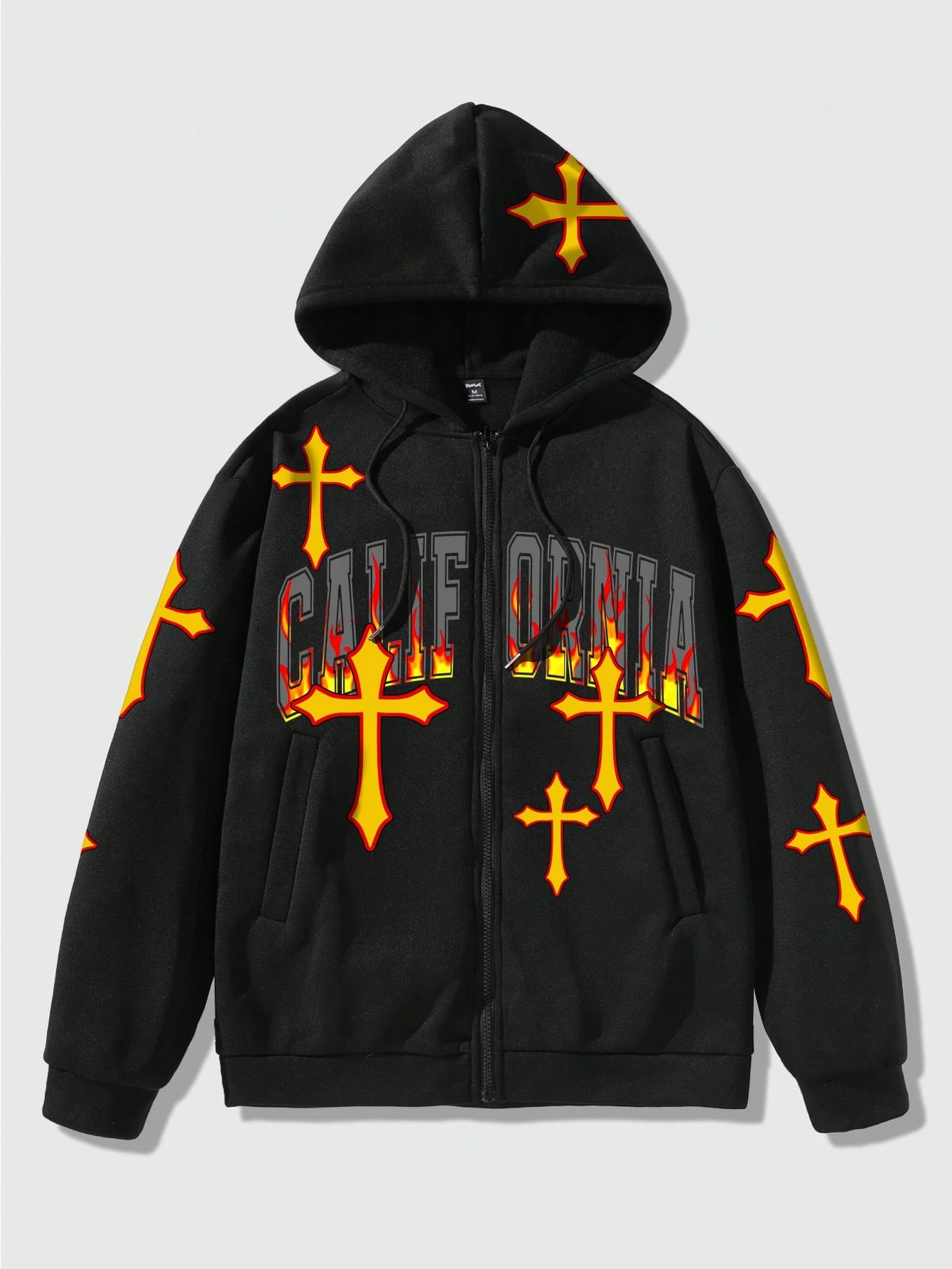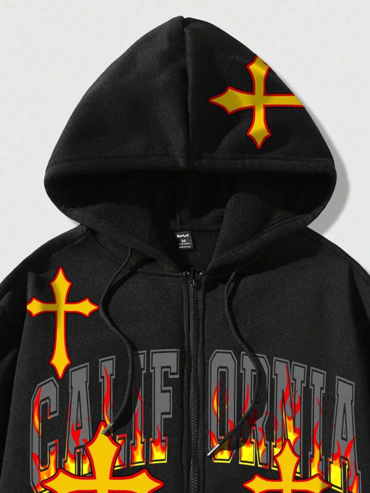 Street Life Hombre Sudadera Con Capucha Forrada Térmica Con Cordón De Cierre Con Cremallera Y Gráfico De Letras