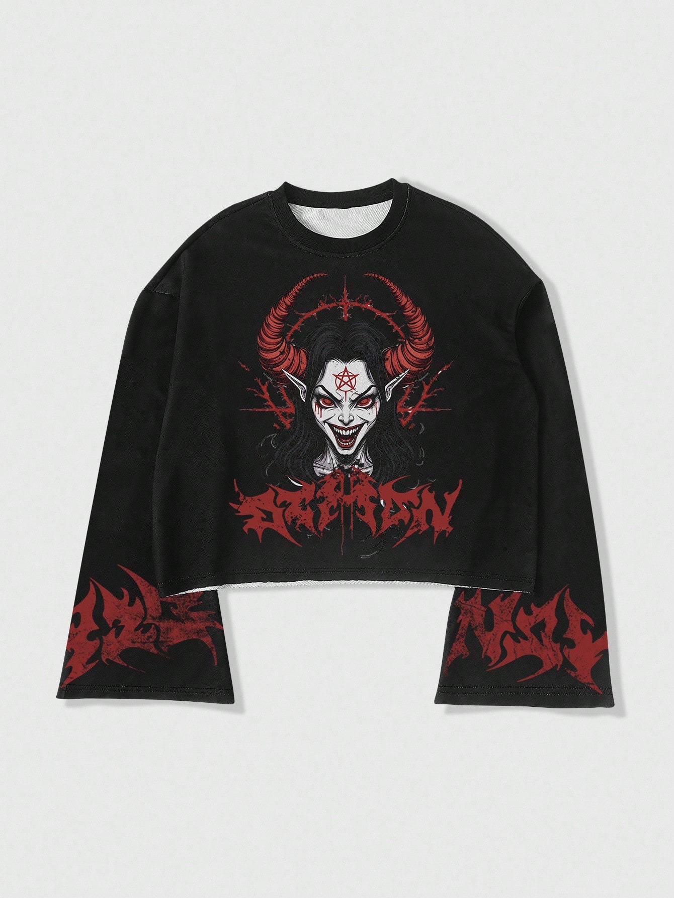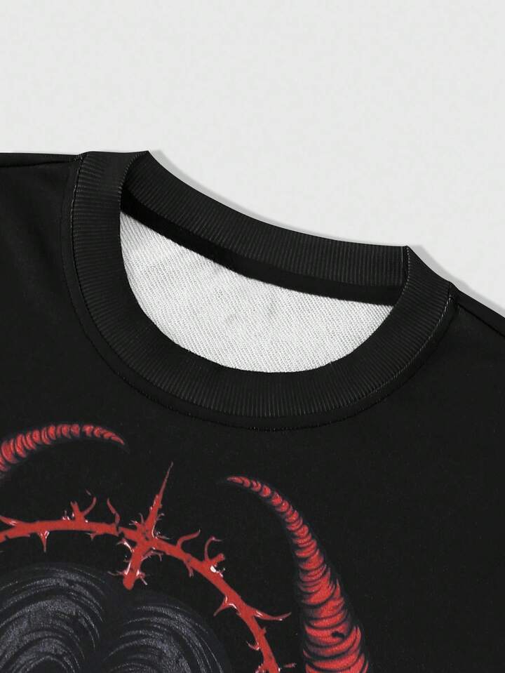 Street Life Camiseta de manga larga con cuello redondo, gráfico gótico con letra y retrato para hombre, otoño
