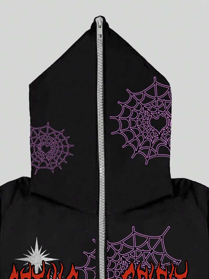 Street Life Hombre Con Capucha Con Cremallera Con Gráfico De Telaraña Y Letras