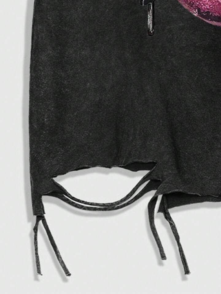 Street Life Conjunto de camiseta y pantalones cortos para hombre con estampado de labios desgastado y desteñido