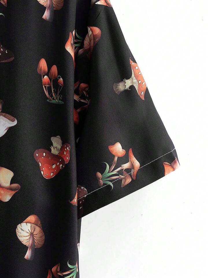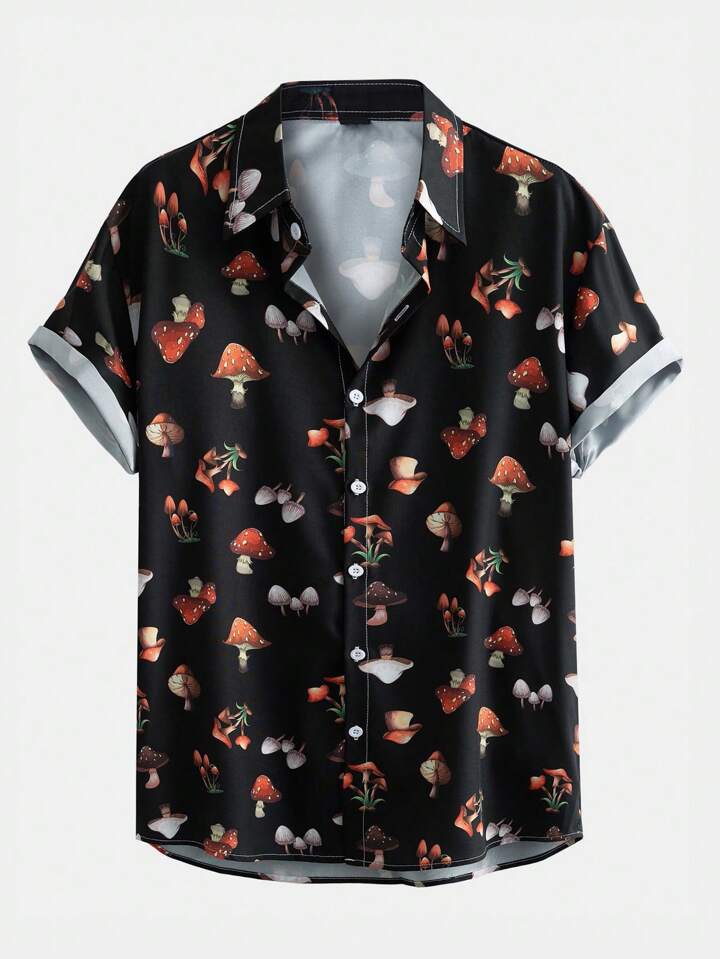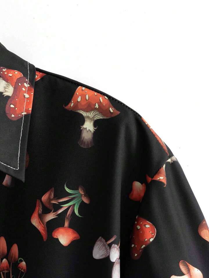 Street Life Camisa Para Hombre Con Estampado De Setas Y Botones En La Parte Delantera