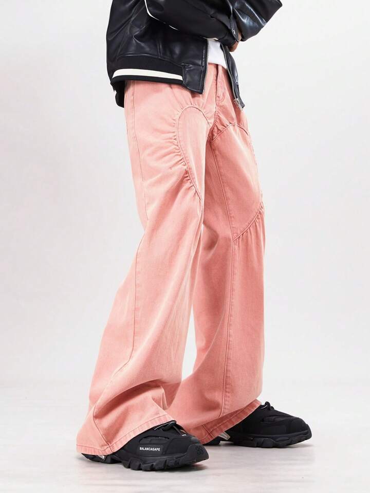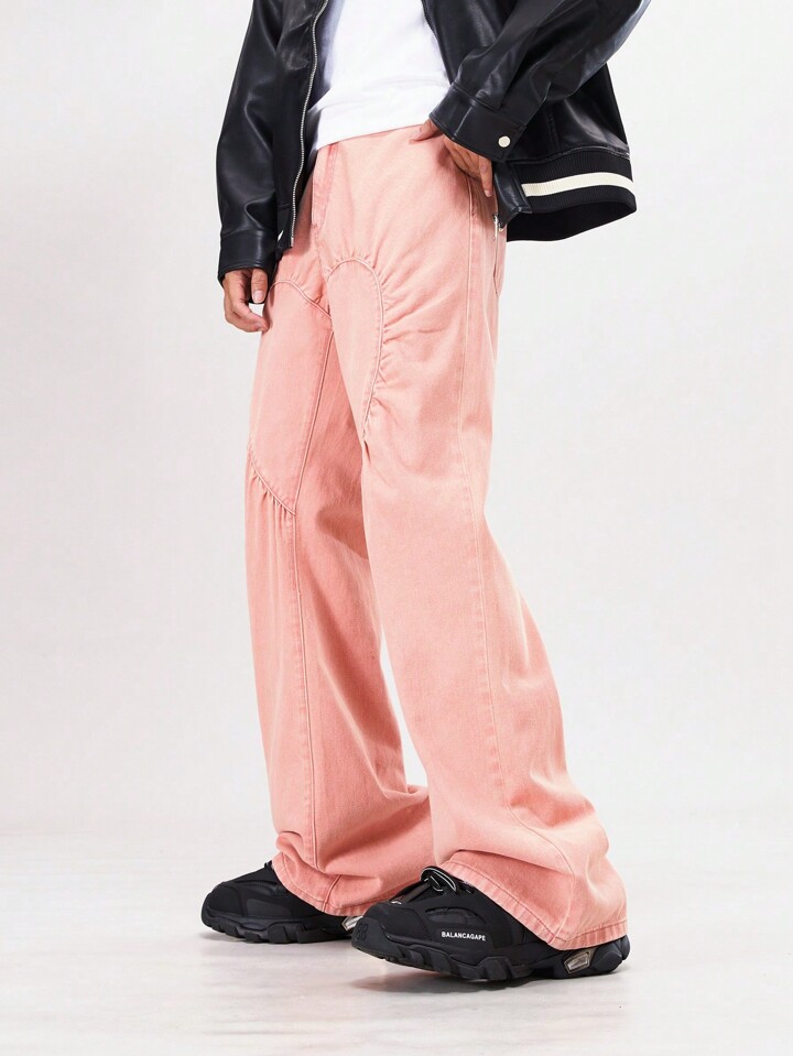Street Life Jeans simples con bolsillo en el corazón y pliegues, para uso casual diario de hombres