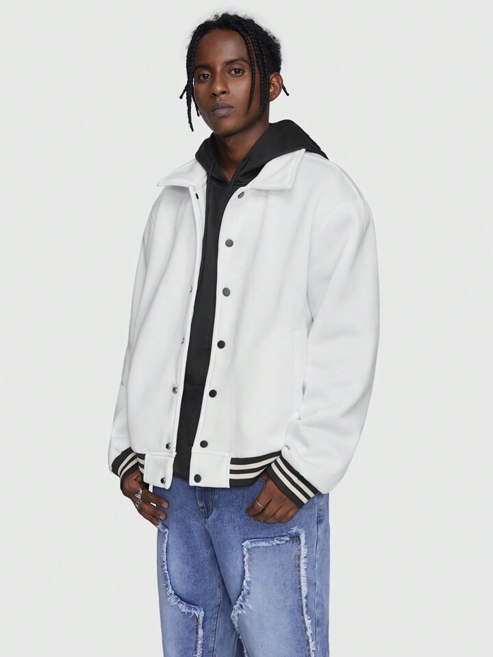 Street Life Chaquetón Blanco Puro De Cierre De Cremallera Y Cuello Con Botones Para Hombres