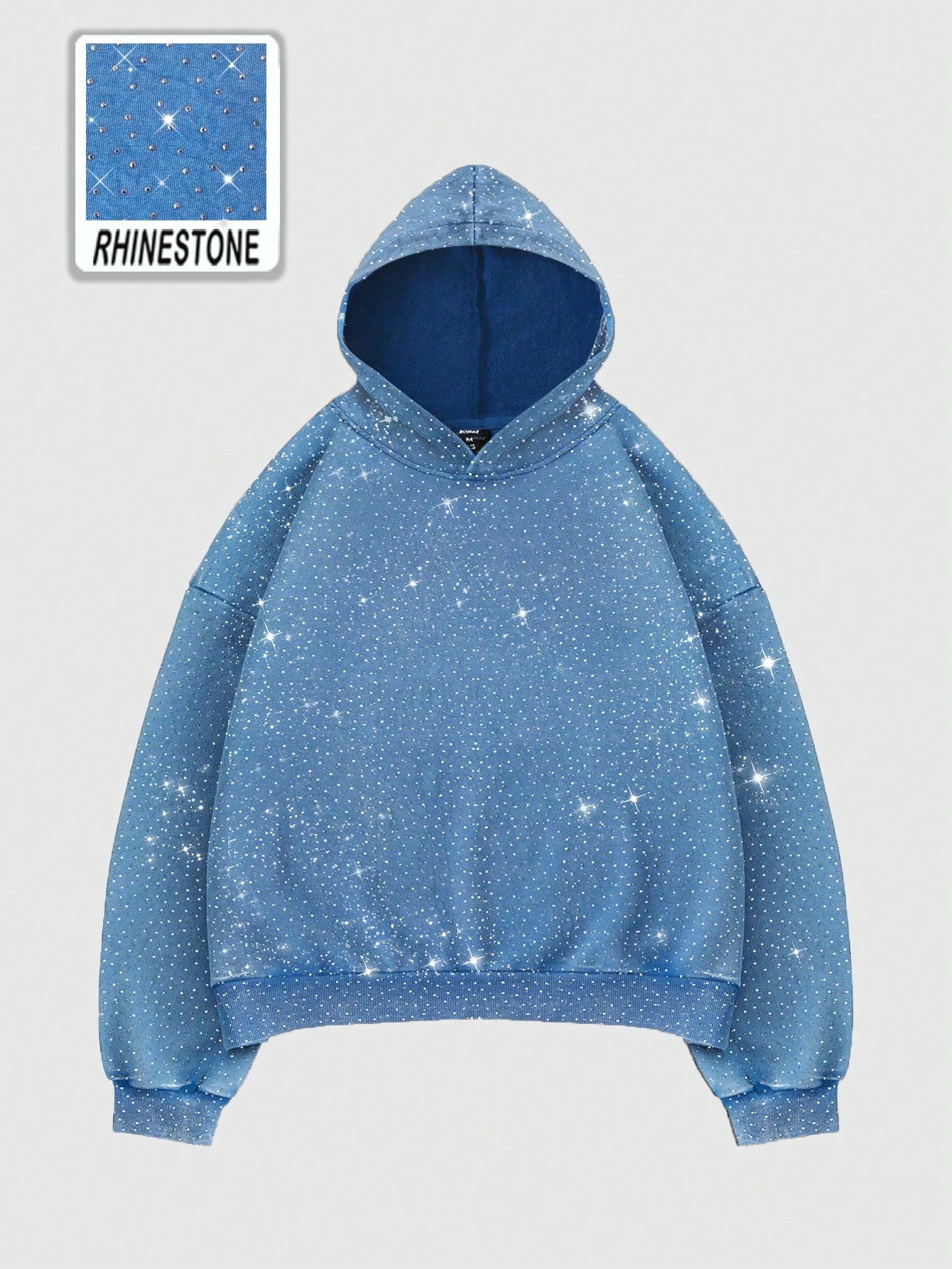 Street Life Sudadera con capucha corta y suelta con strass para hombres, estilo urbano, otoño