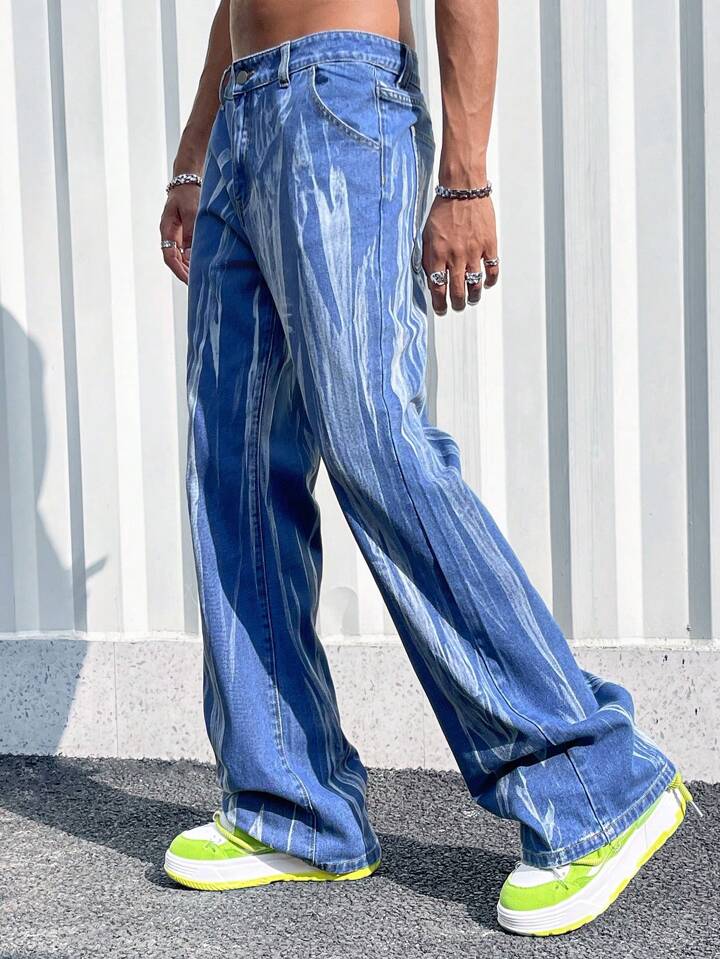 Street Life Pantalones Vaqueros Rectos Impresos Para Hombre