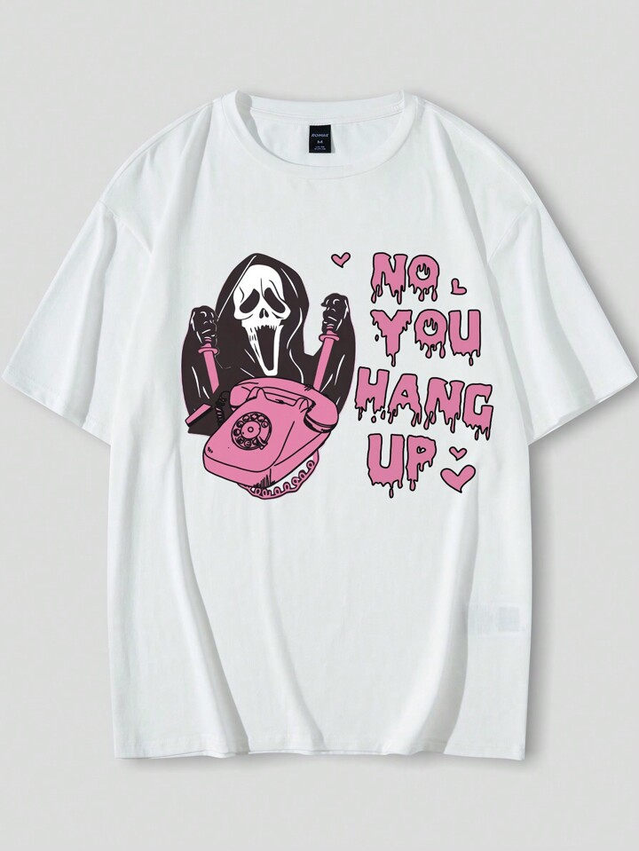 Street Life Camiseta De Manga Corta Impresa Con Eslogan Y Cabeza De Calavera Para Hombres
