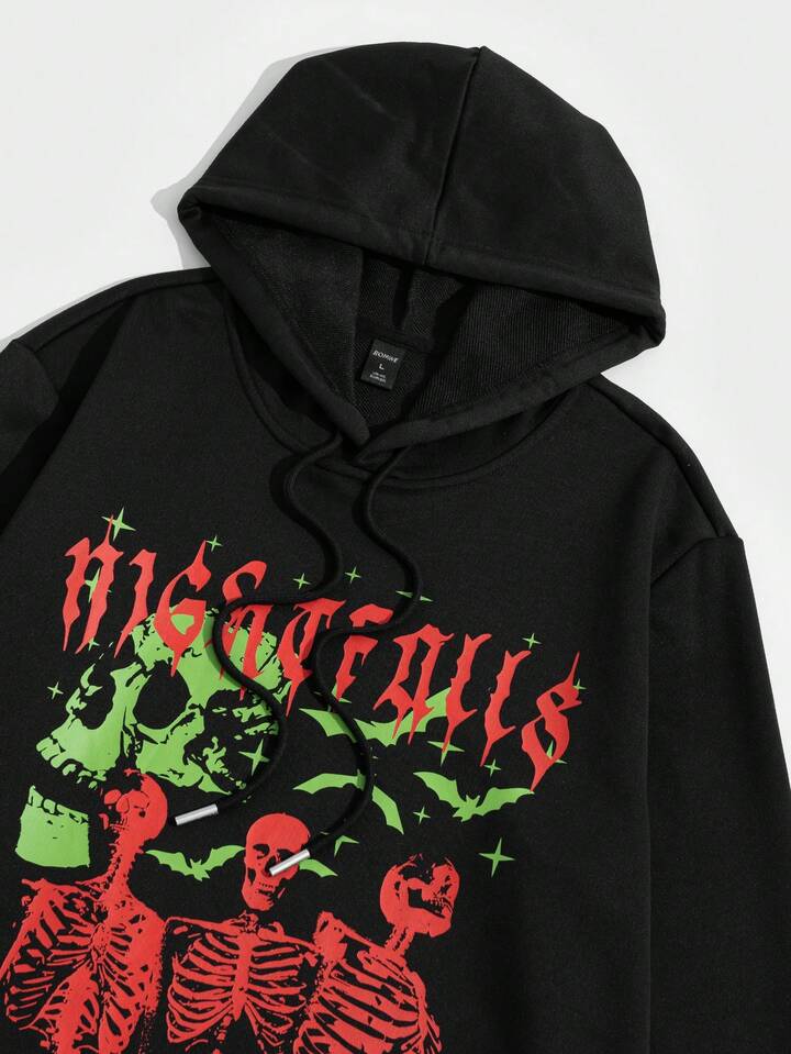 Street Life Sudadera Para Hombre Con Cordón, Con Eslogan Y Gráfico Esqueleto