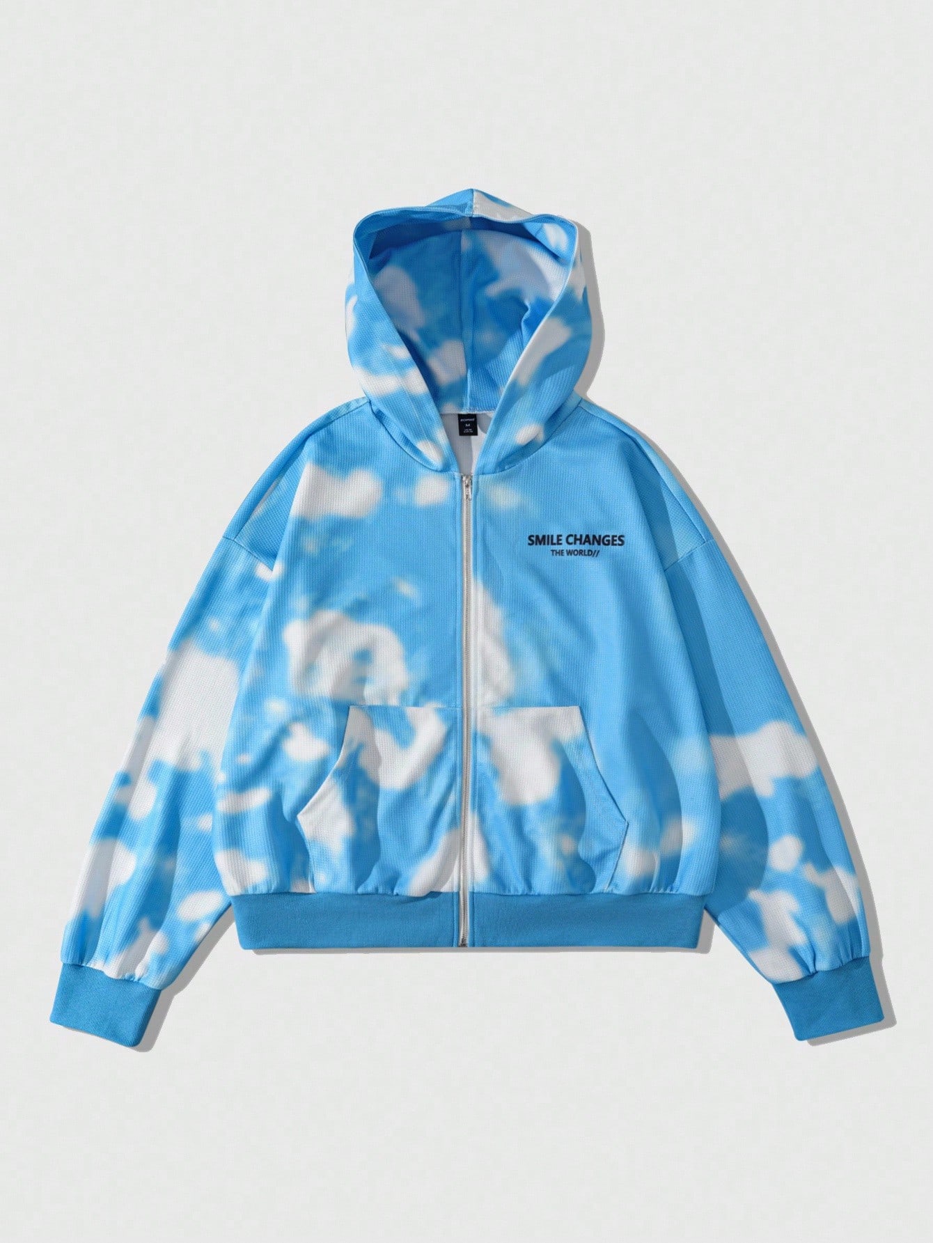 Street Life Sudadera con capucha con cremallera y estampado de teñido anudado para hombre, otoño