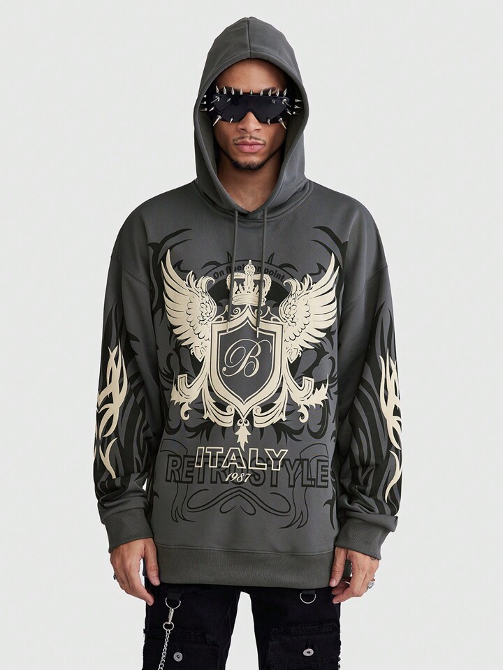 Street Life Sudadera con capucha holgada con marca de agua y estampado de patrón con efecto de espuma, ropa de calle vintage (con refuerzo en el cuello, bajo y costuras de los hombros para evitar la deformación)