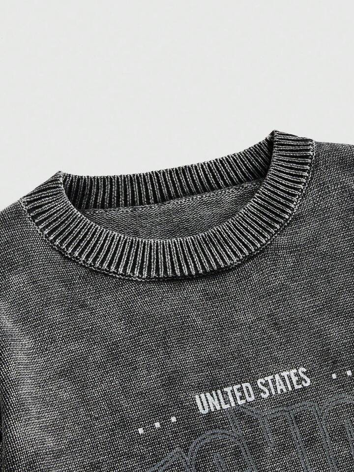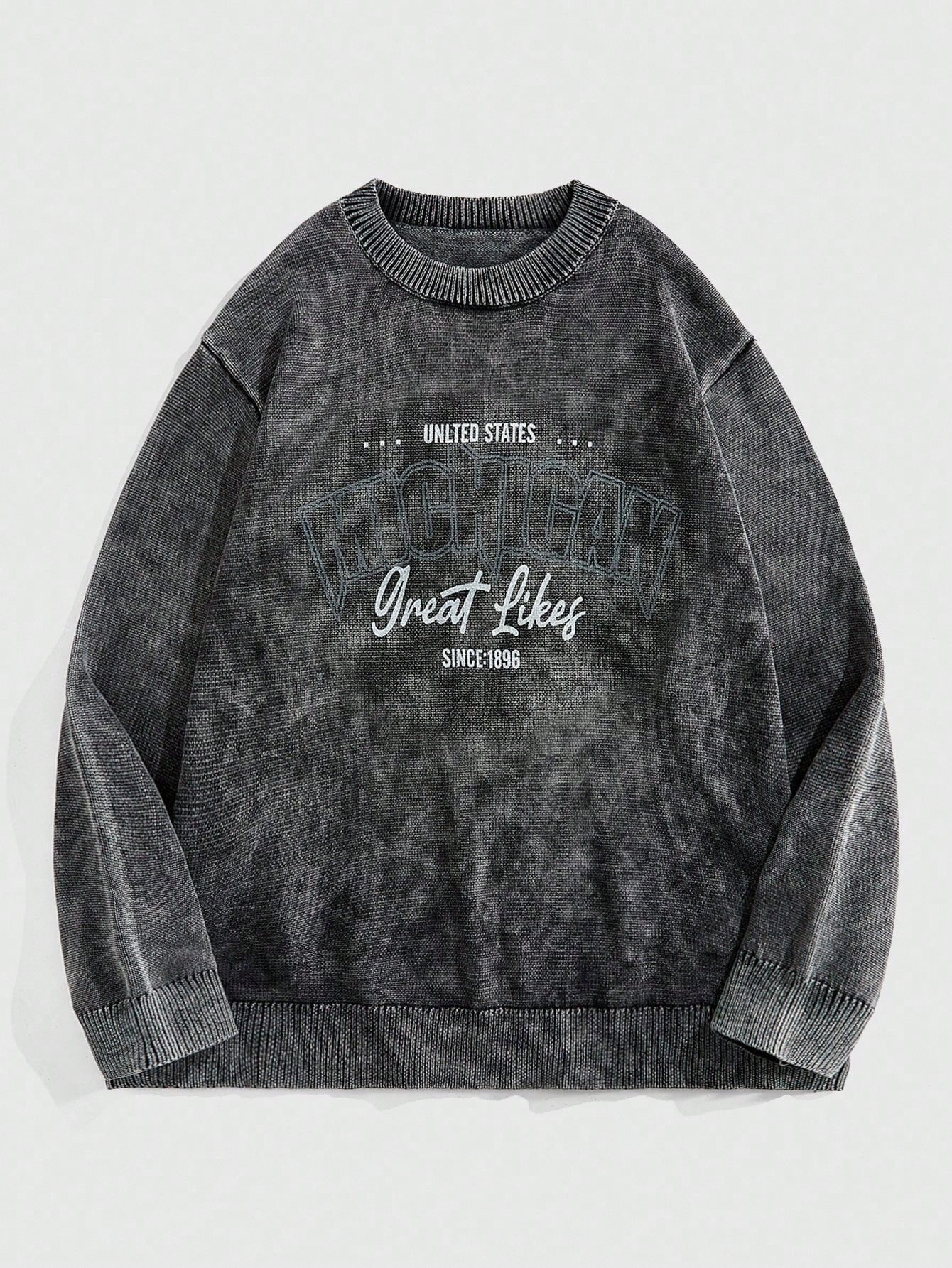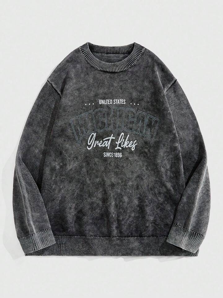 Street Life Suéter de cuello redondo con lavado ácido para hombre, estilo streetwear