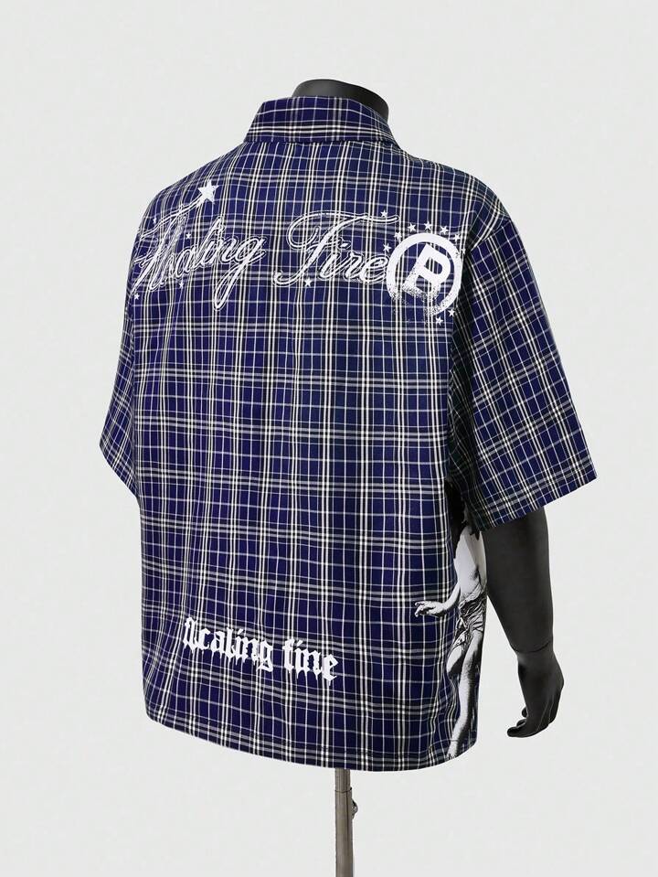 Street Life Camisa de manga corta para hombre inspirada en el estilo urbano estadounidense con estampado gráfico de niño ángel en inglés y estampado a cuadros, diseño de verano