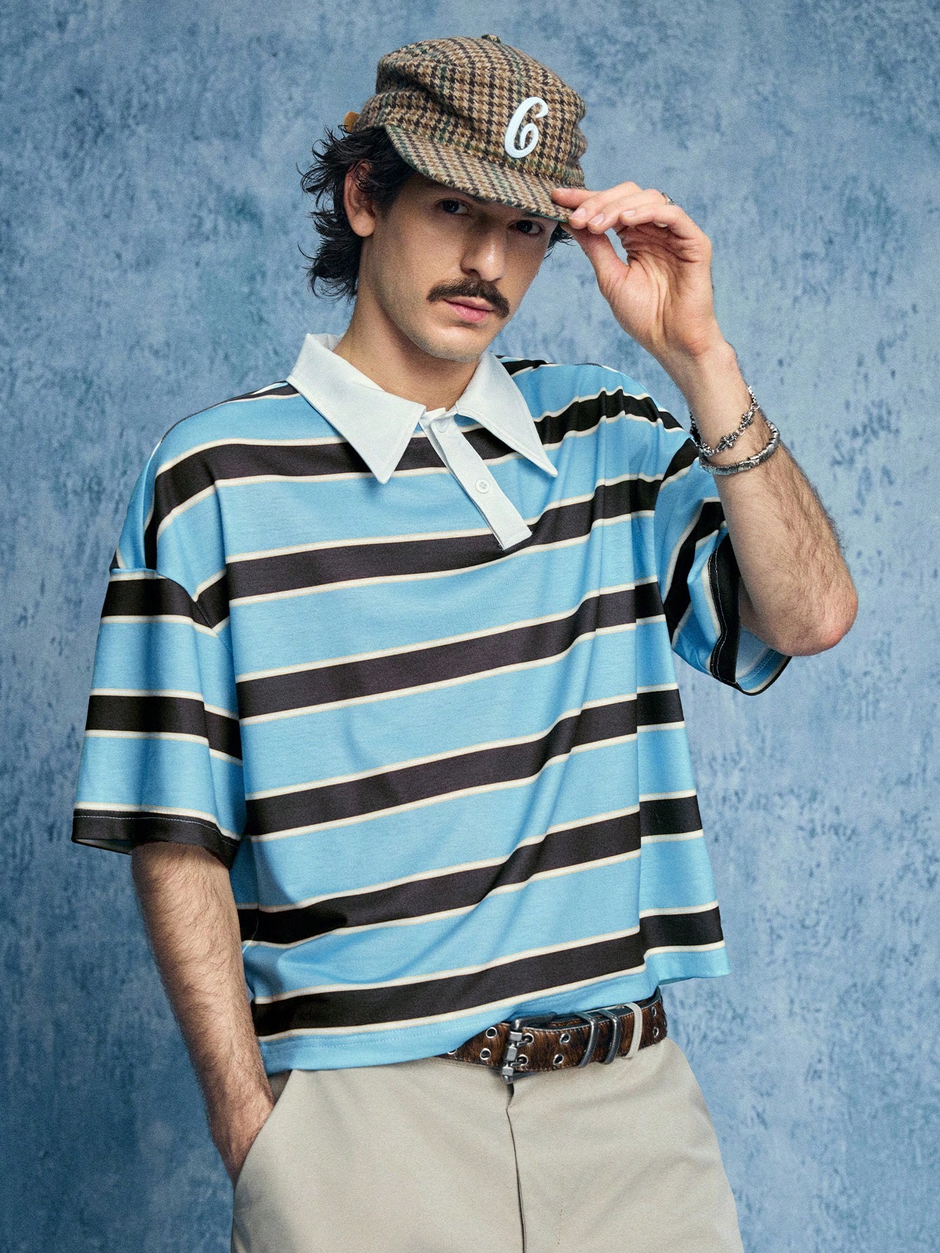 Street Life Camiseta casual de manga corta con cuello asimétrico y rayas para hombre