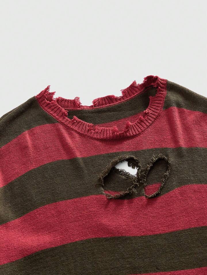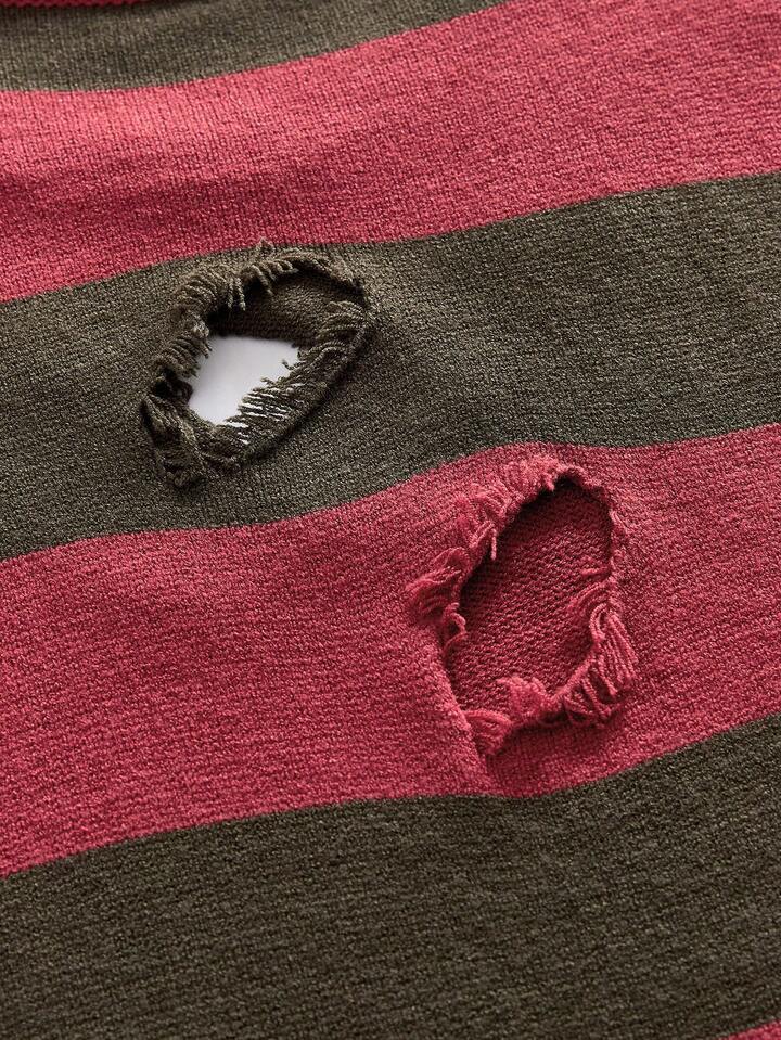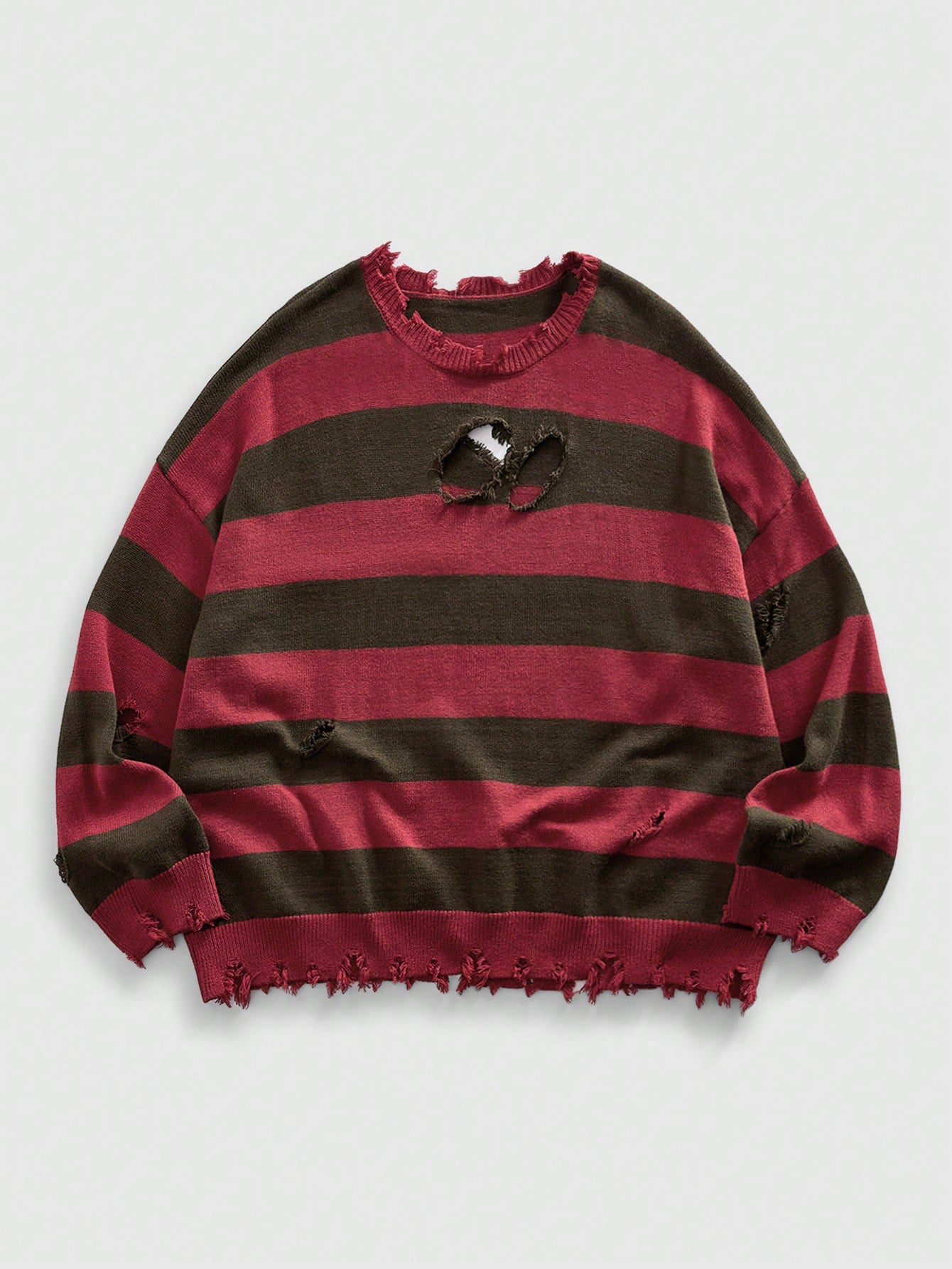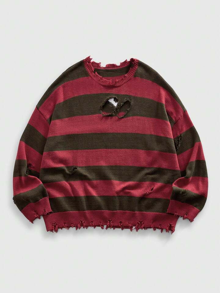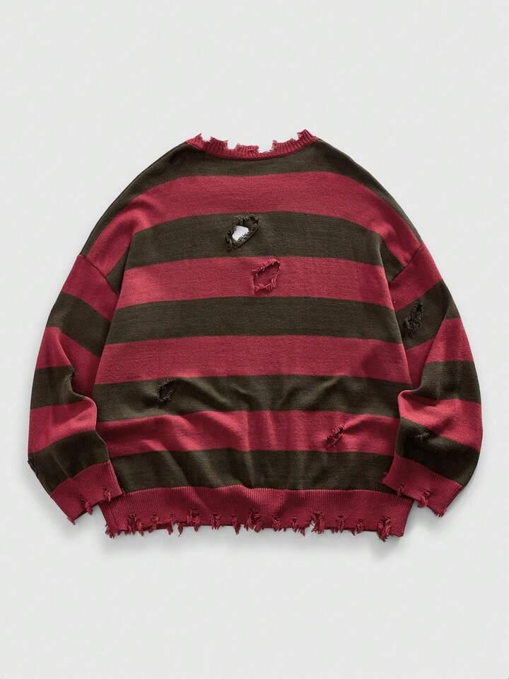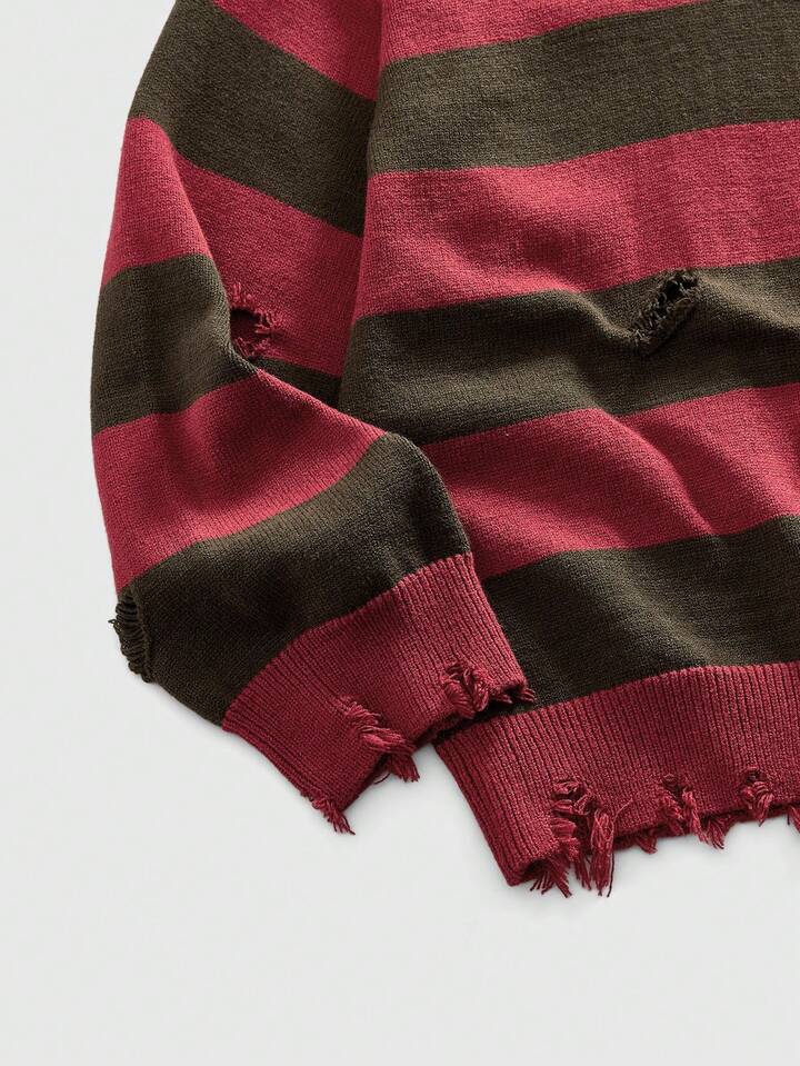Street Life Suéter casual de manga larga con corte asimétrico, rayas y ajuste holgado para hombres
