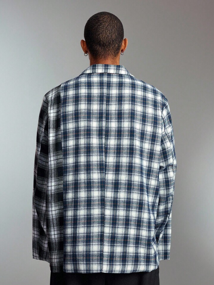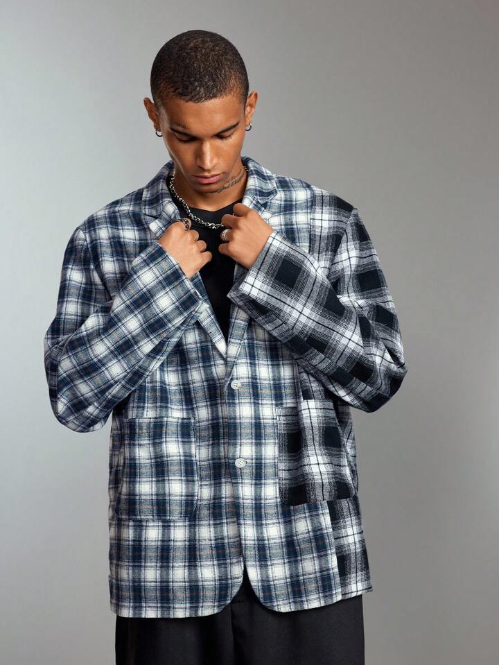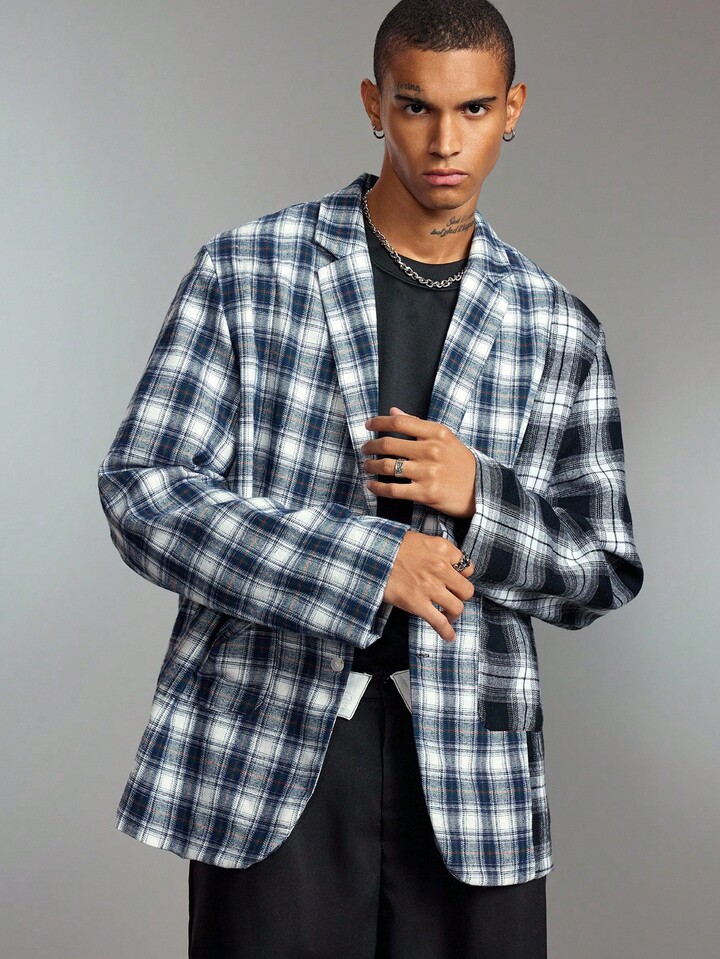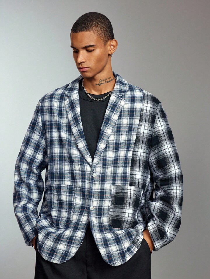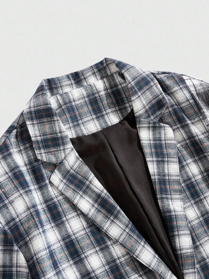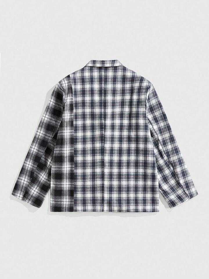 Street Life Chaqueta casual/de negocios de manga larga con cuello de solapa a cuadros para hombre, otoño