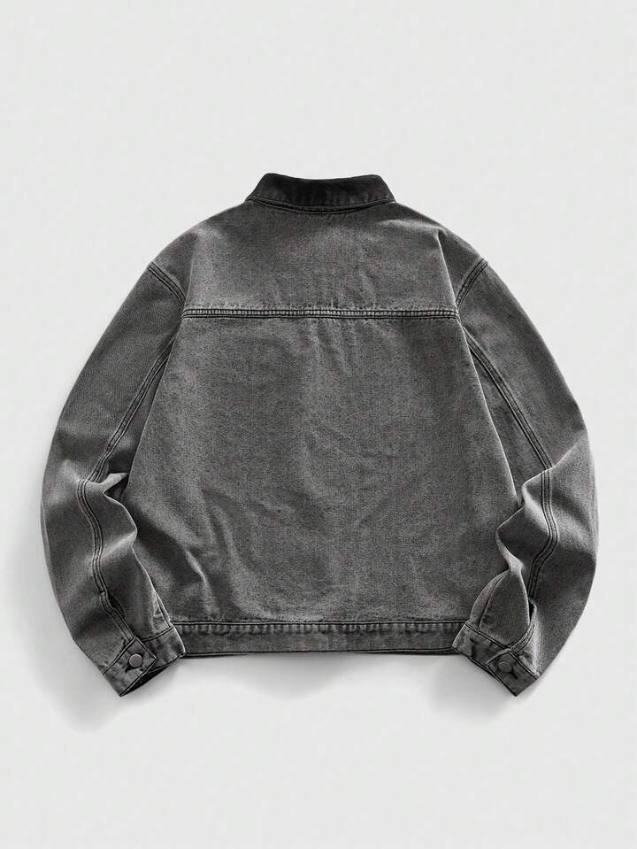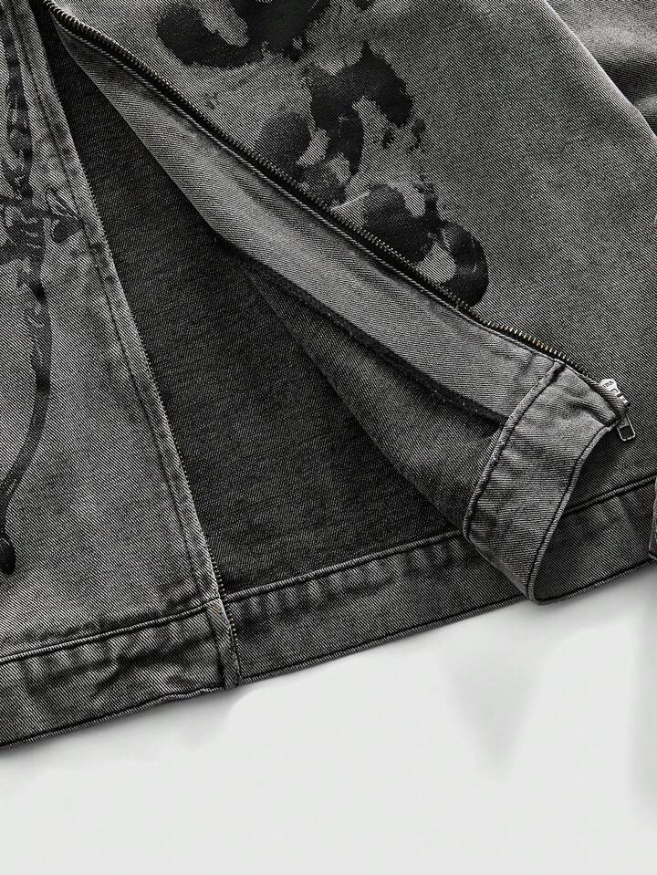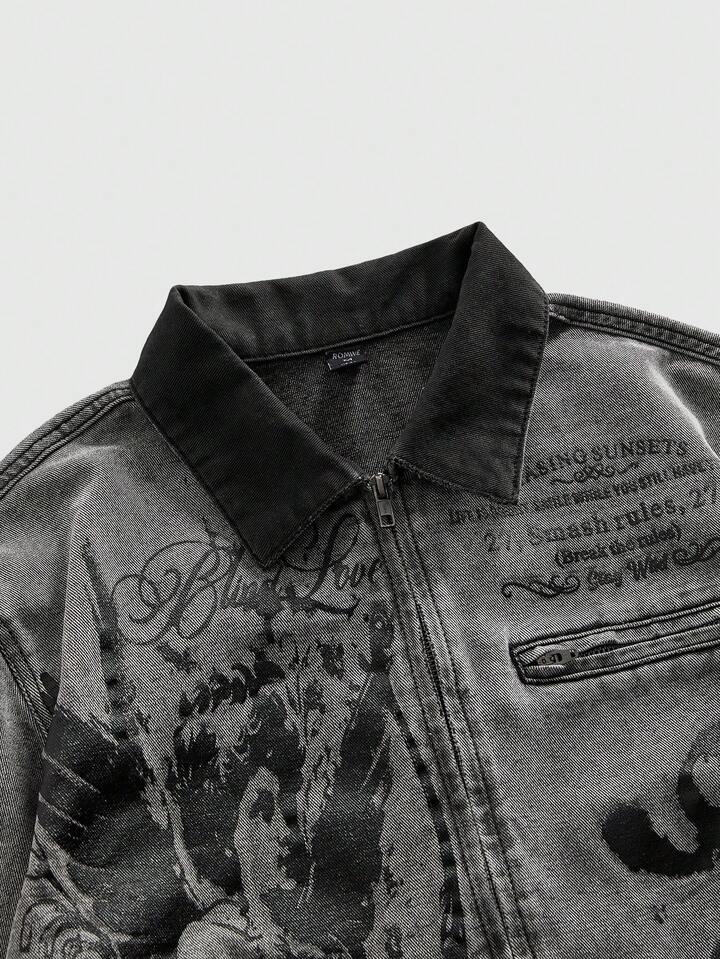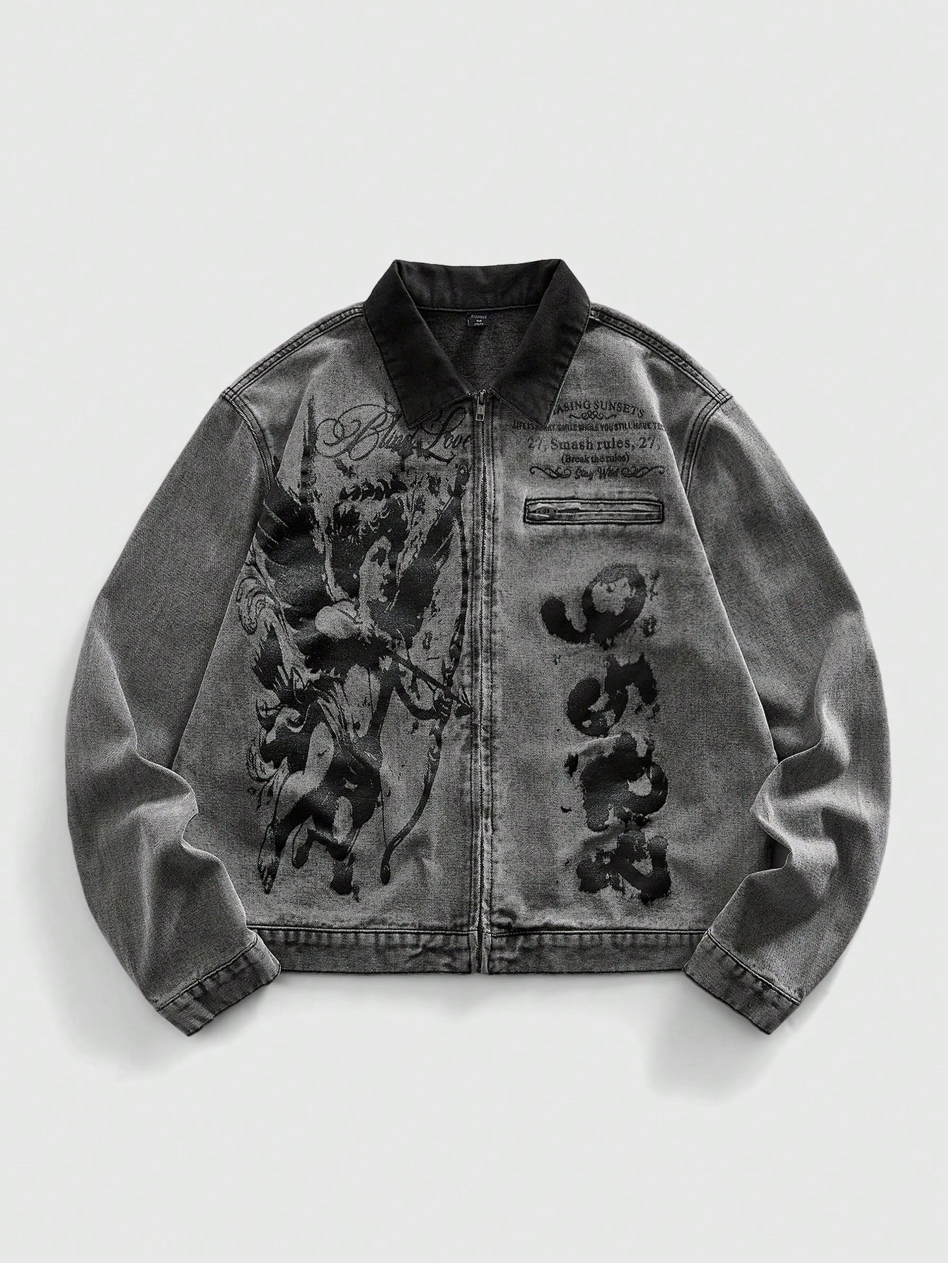 Street Life Chaqueta vaquera con cremallera con estampado de ángel y eslogan para hombre en otoño