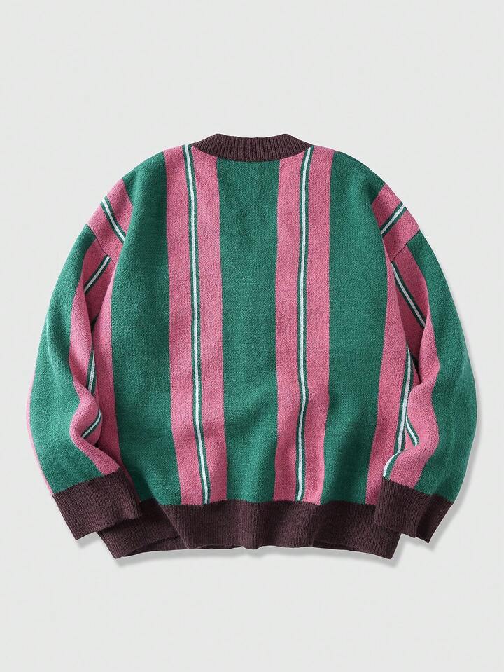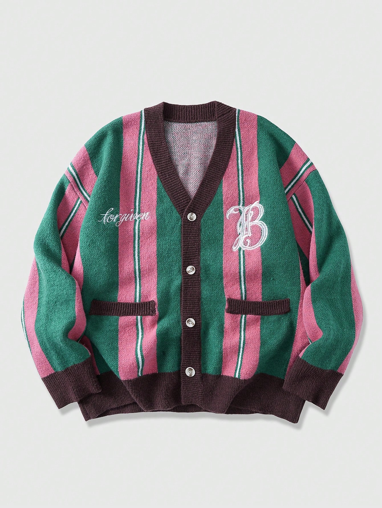 Street Life Cárdigan de punto casual de manga larga con rayas y bordado de letras para hombre, para otoño/invierno