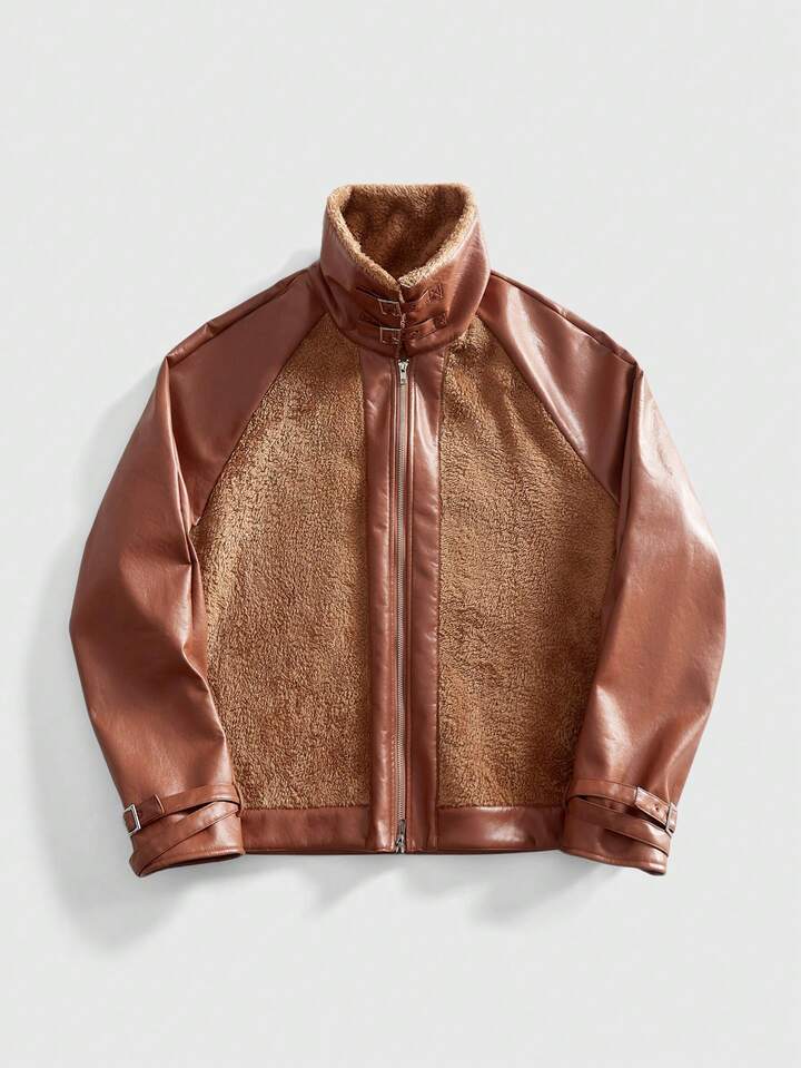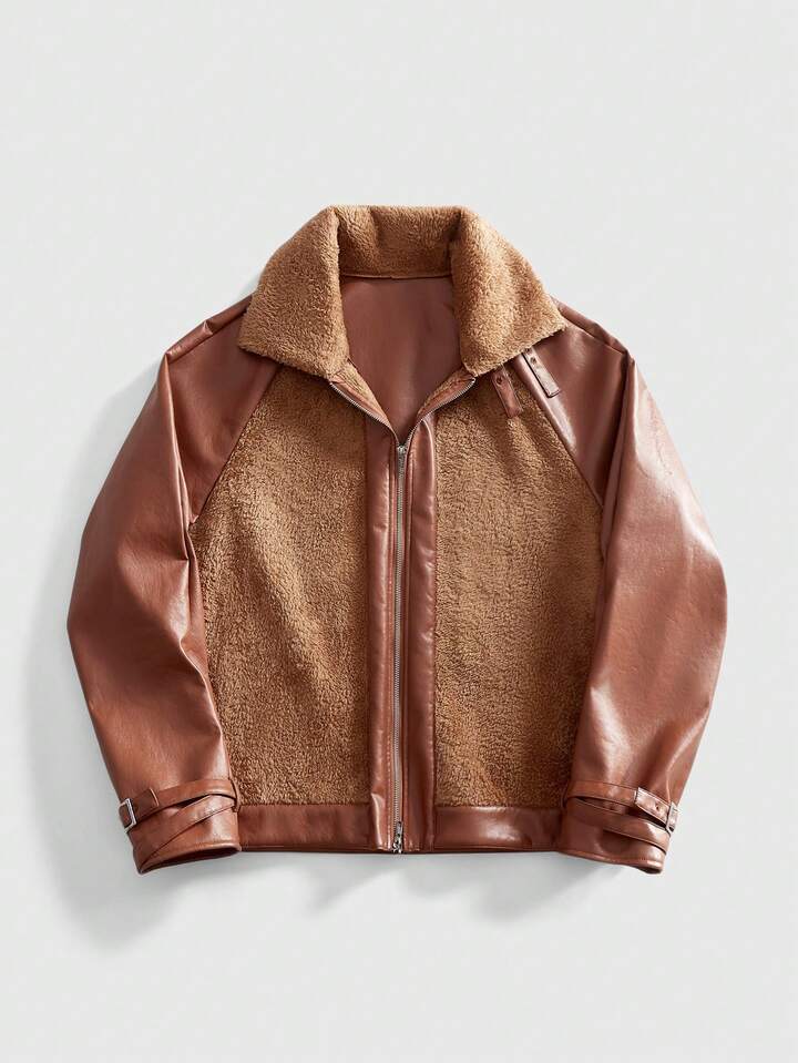 Street Life Chaqueta con cremallera, cuello de piel sintética y mangas raglán para hombre, para otoño/invierno