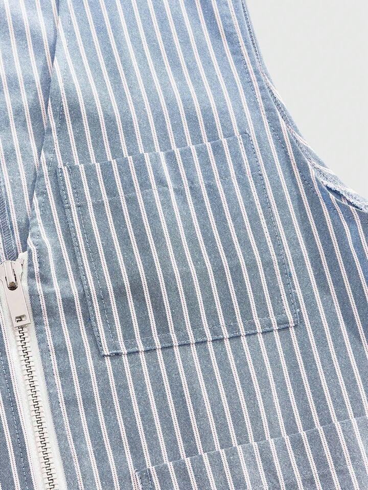 Street Life Chaleco casual con cremallera y bolsillo a rayas para hombre en otoño