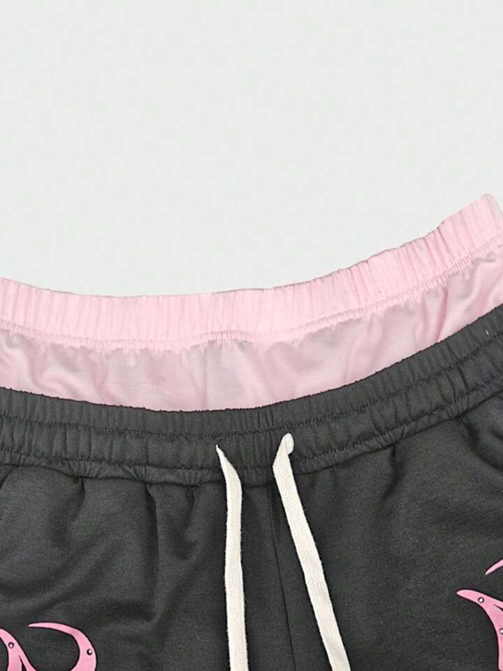 Street Life Shorts casuales de hombre con estampado de letra en brillo negro