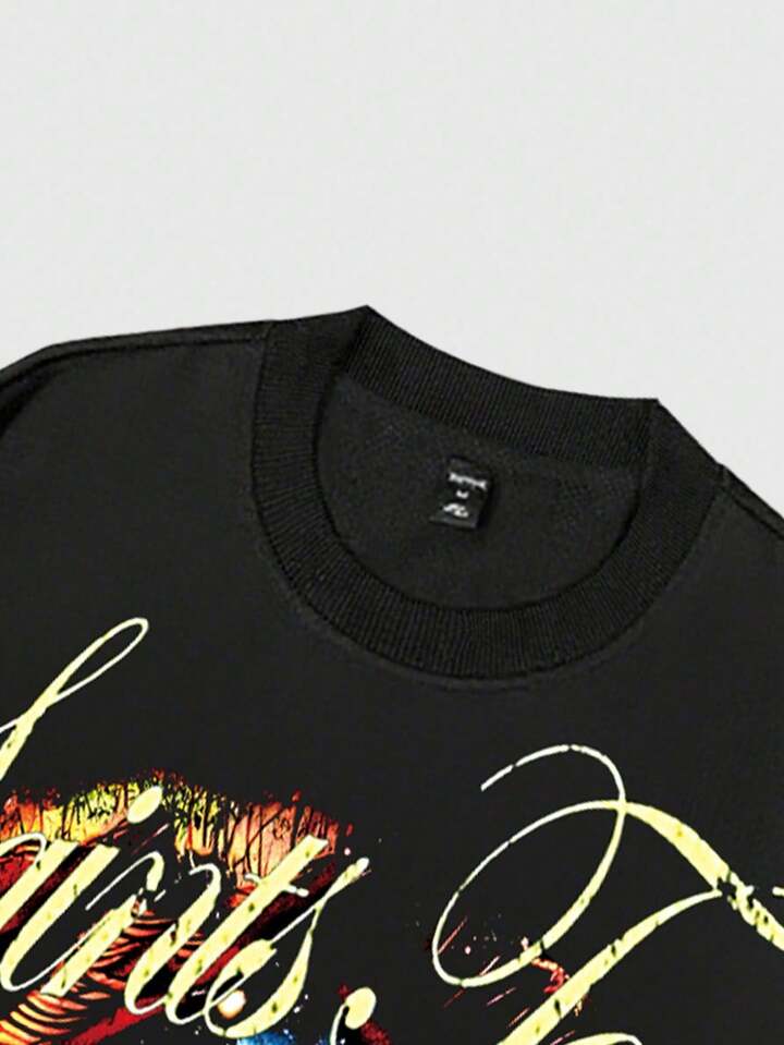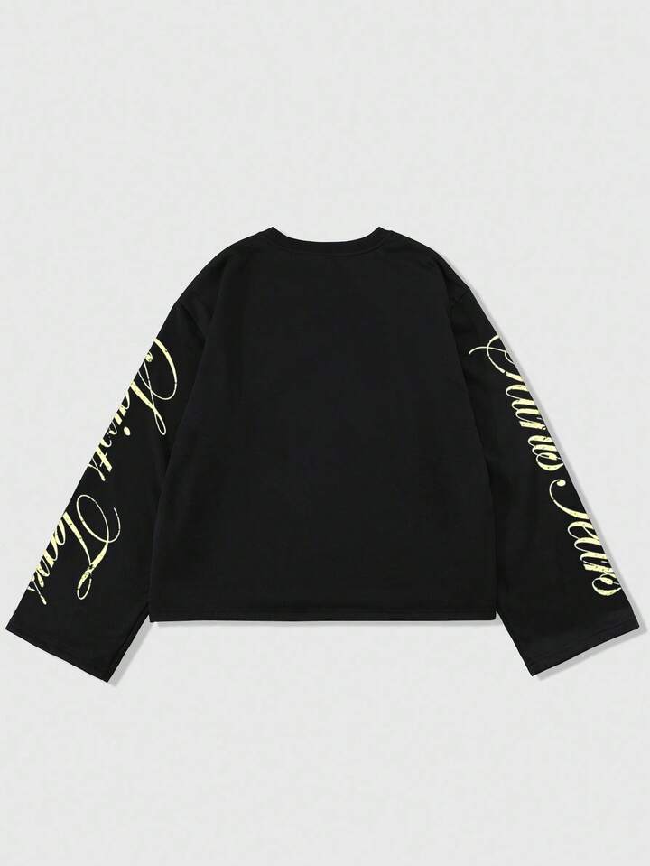 Street Life Camiseta casual de cuello redondo de manga larga con estampado de letras negras para hombre, otoño/invierno