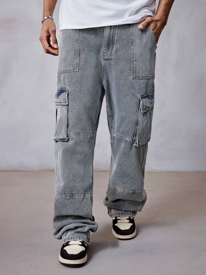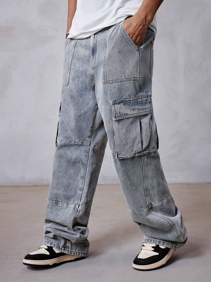 Street Life Jeans casuales de corte holgado con bolsillos cargo para hombre