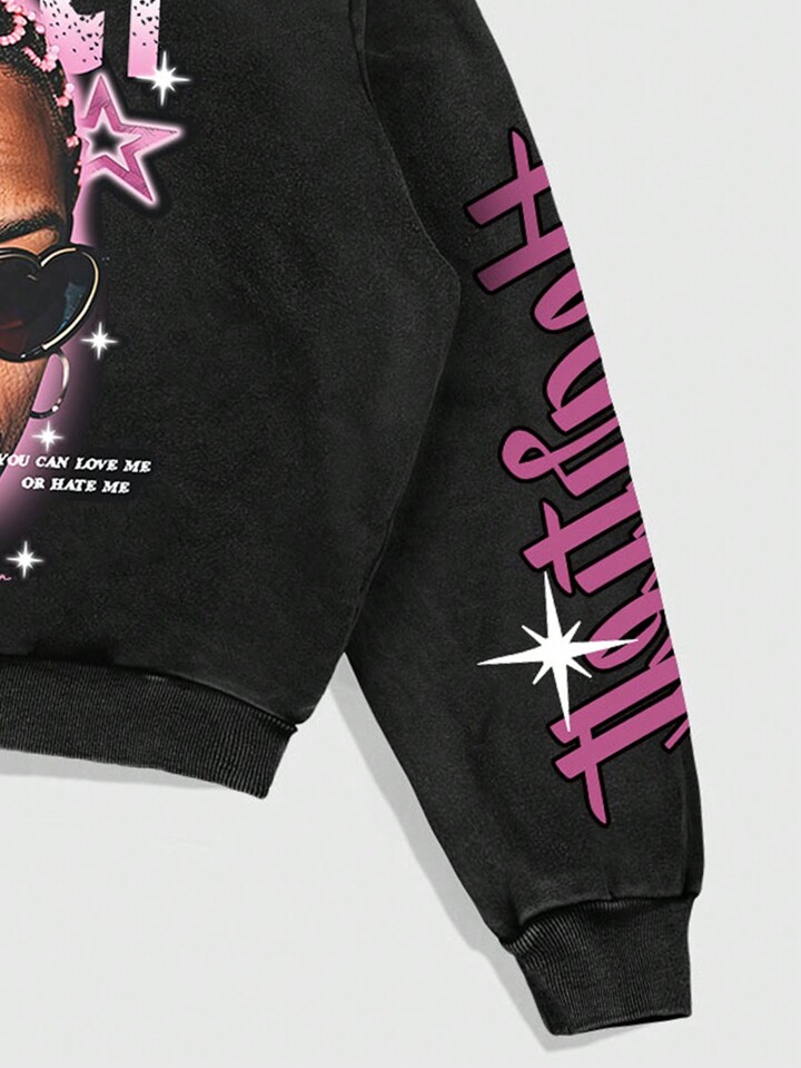 Street Life Sudadera con capucha y estampado de personaje de caricatura para hombre con fruncido.