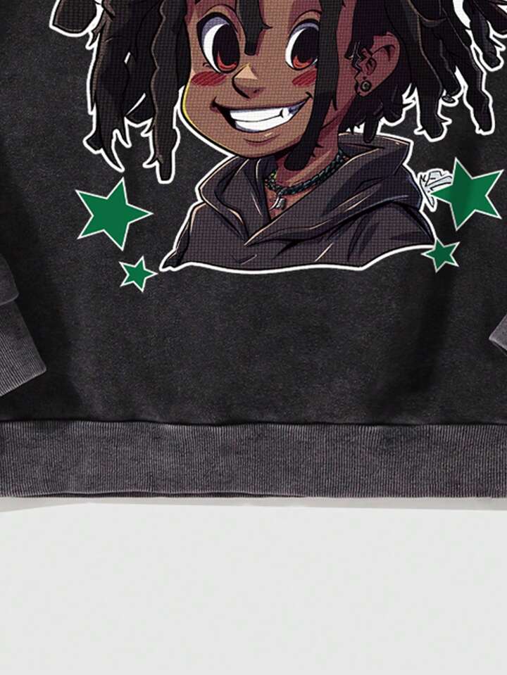 Street Life Sudadera con capucha de manga larga con estampado de personaje de caricatura para hombres