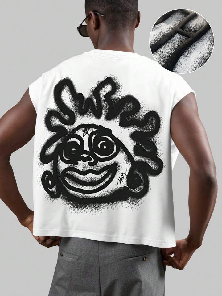 Street Life Camiseta de tirantes de corte holgado con estampado de dibujos animados cuello redondo para hombre, de verano
