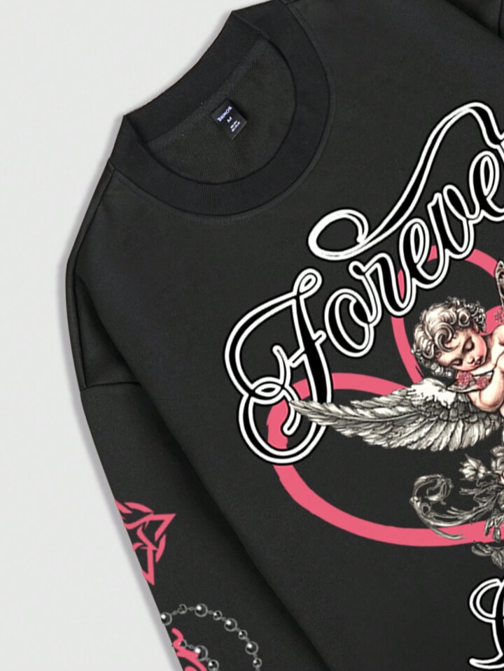 Street Life Camiseta casual de hombre con estampado de letra de ángel, otoño