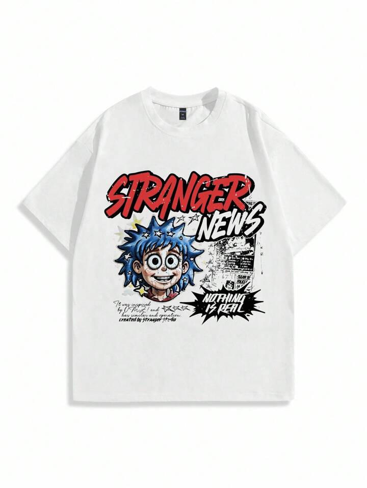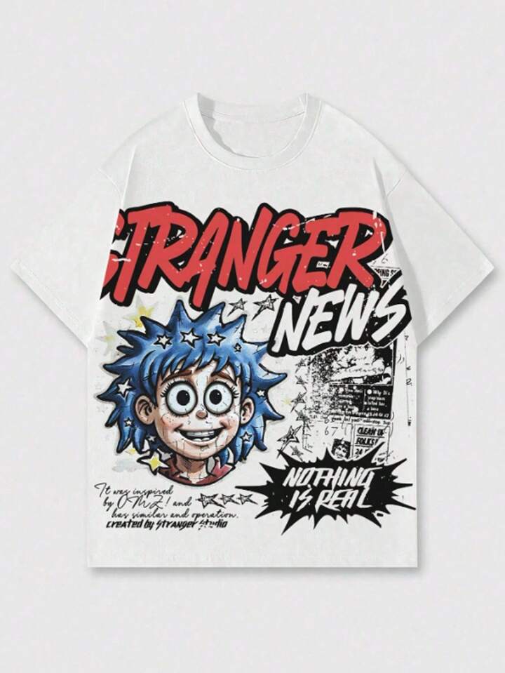 Street Life Camiseta de manga corta de cuello redondo con impresión de letra de dibujos animados casual de verano para hombre