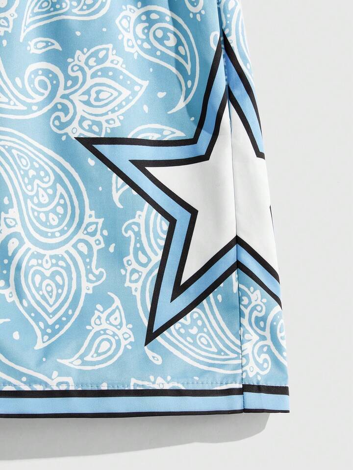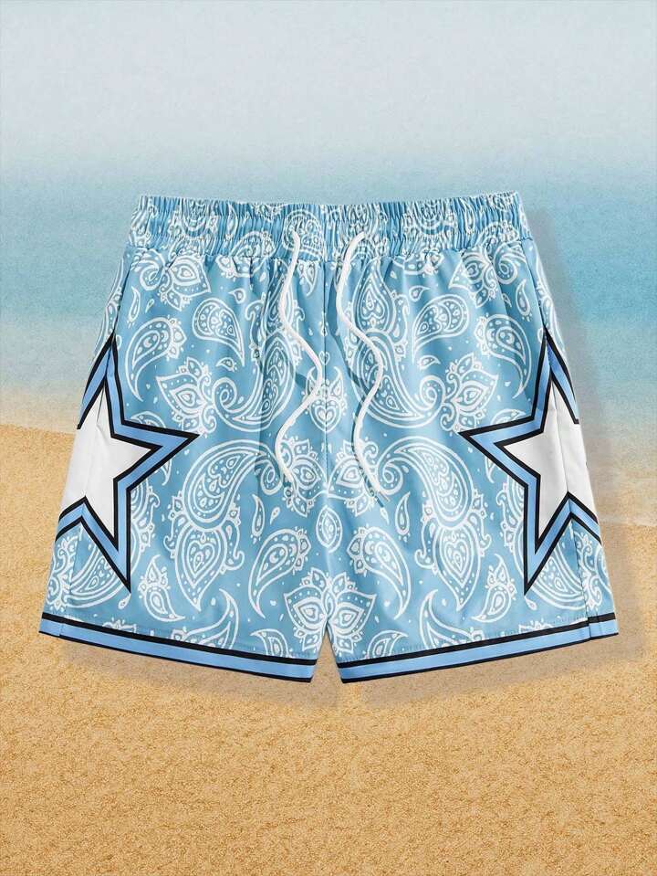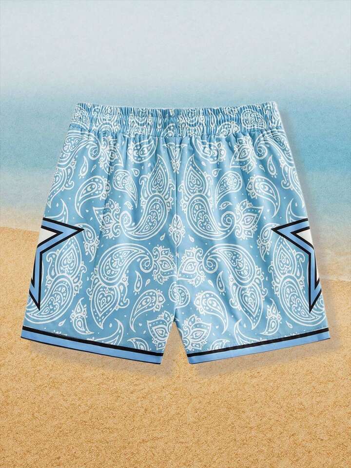 Street Life Pantalones cortos casuales de hombre con estampado de flores de anacardo y estrellas, ideal para el verano